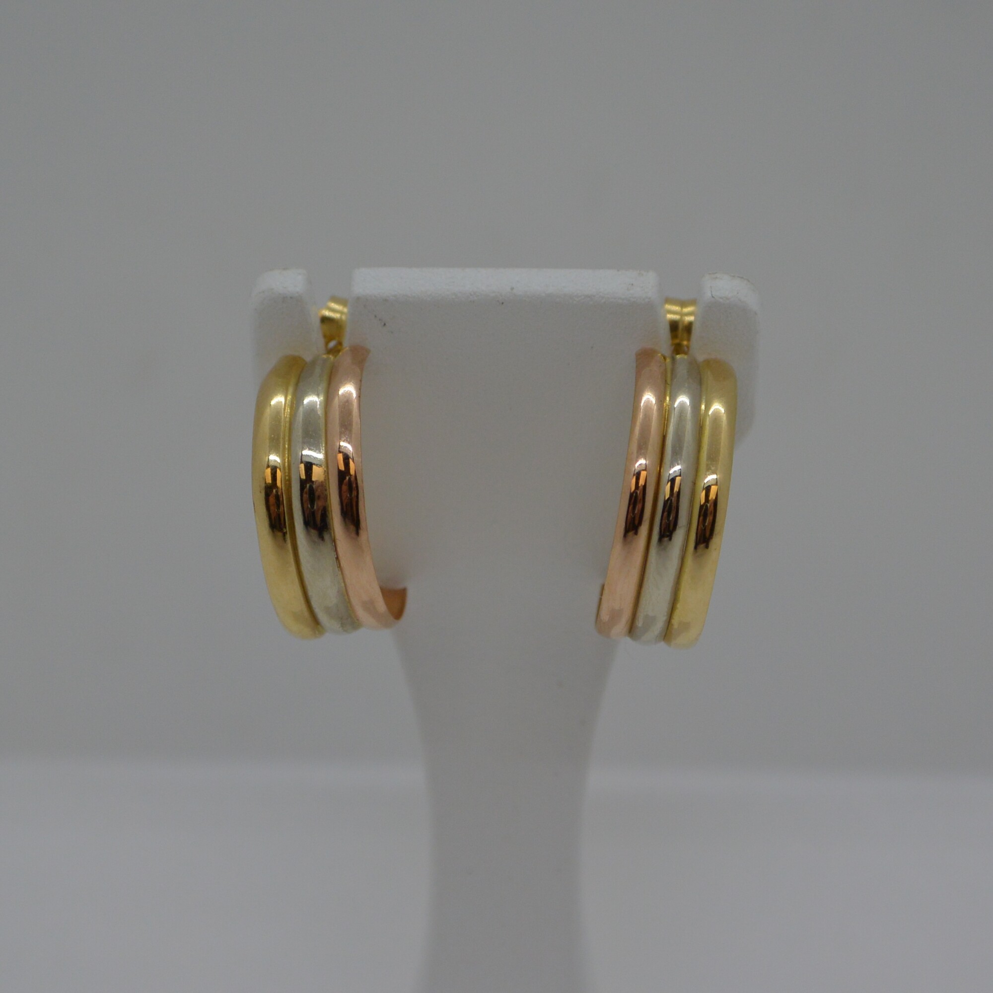 1/2 Créoles 3 ors 18kt fermoir poussettes