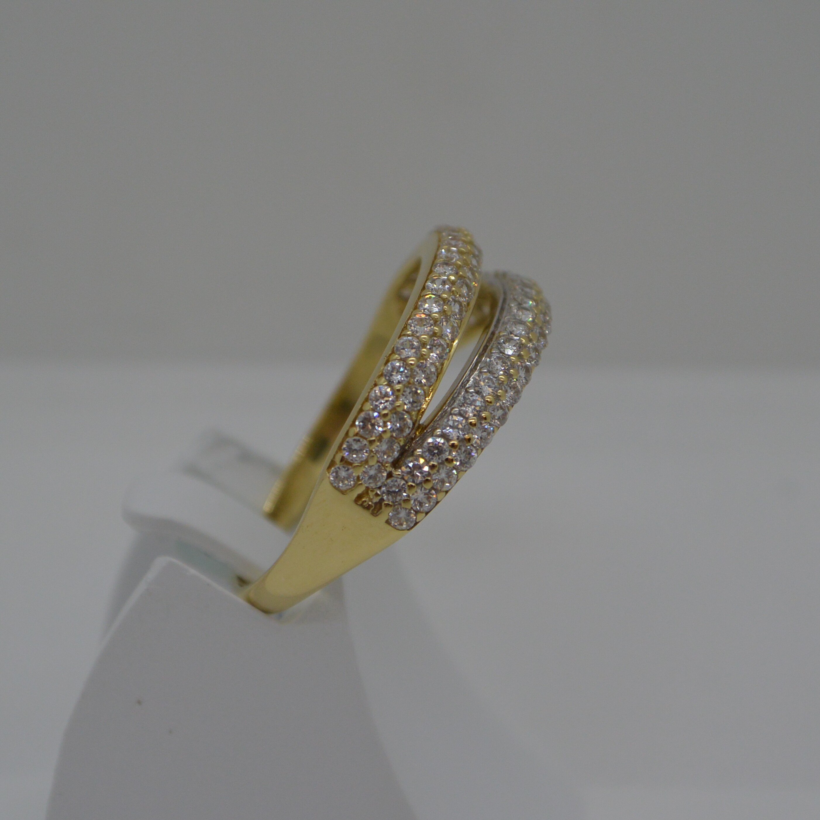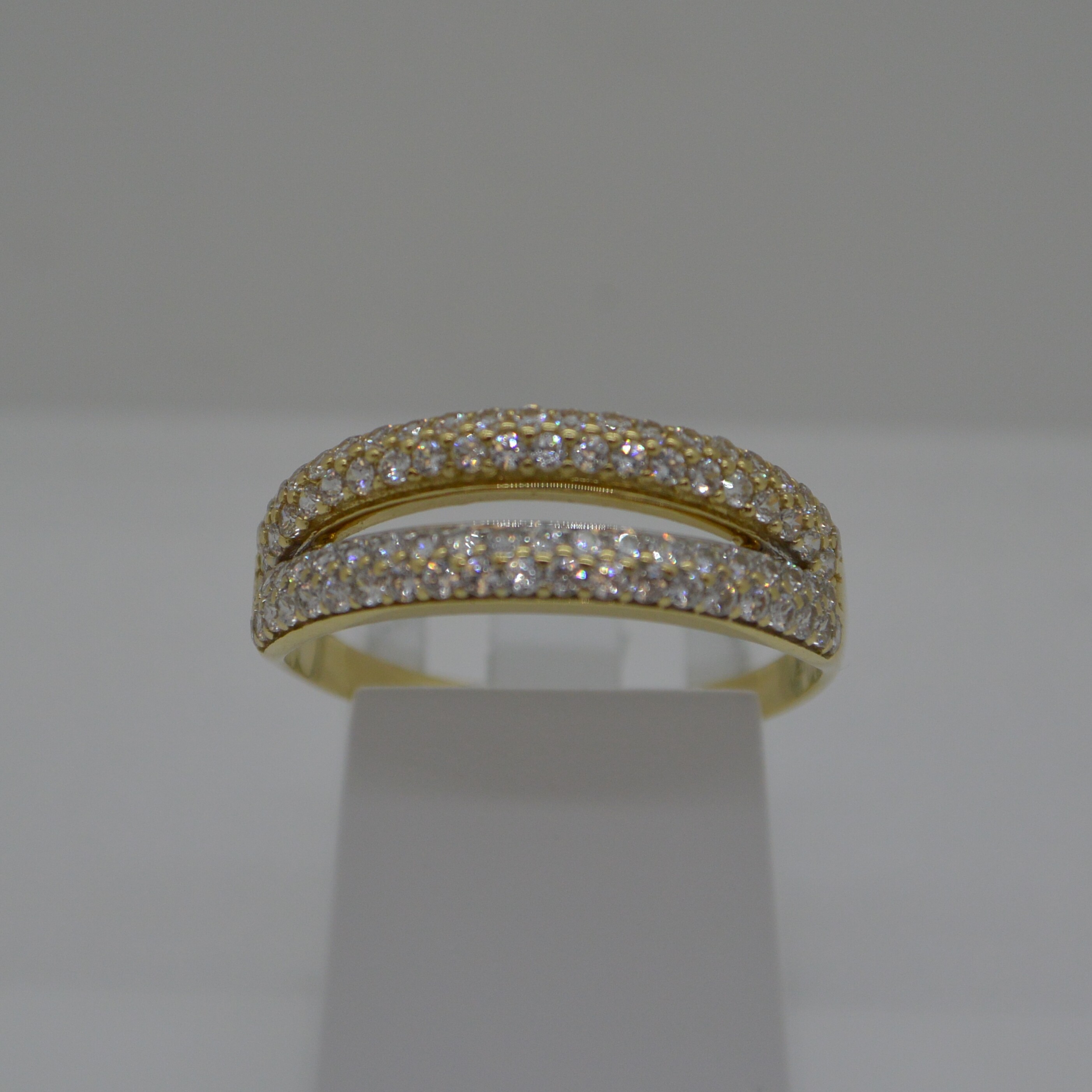 Bague Zircon 4 rangs sur 2 brins serti grains en or jaune 18kt