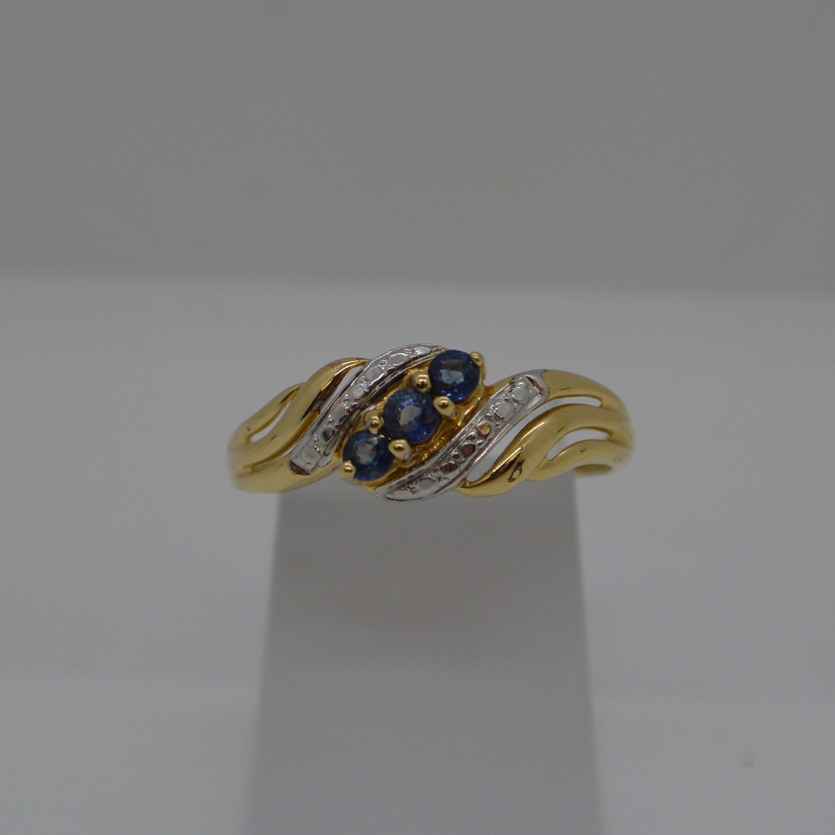Bague Croisée 3 Saphirs en or jaune 18kt et rhodiage