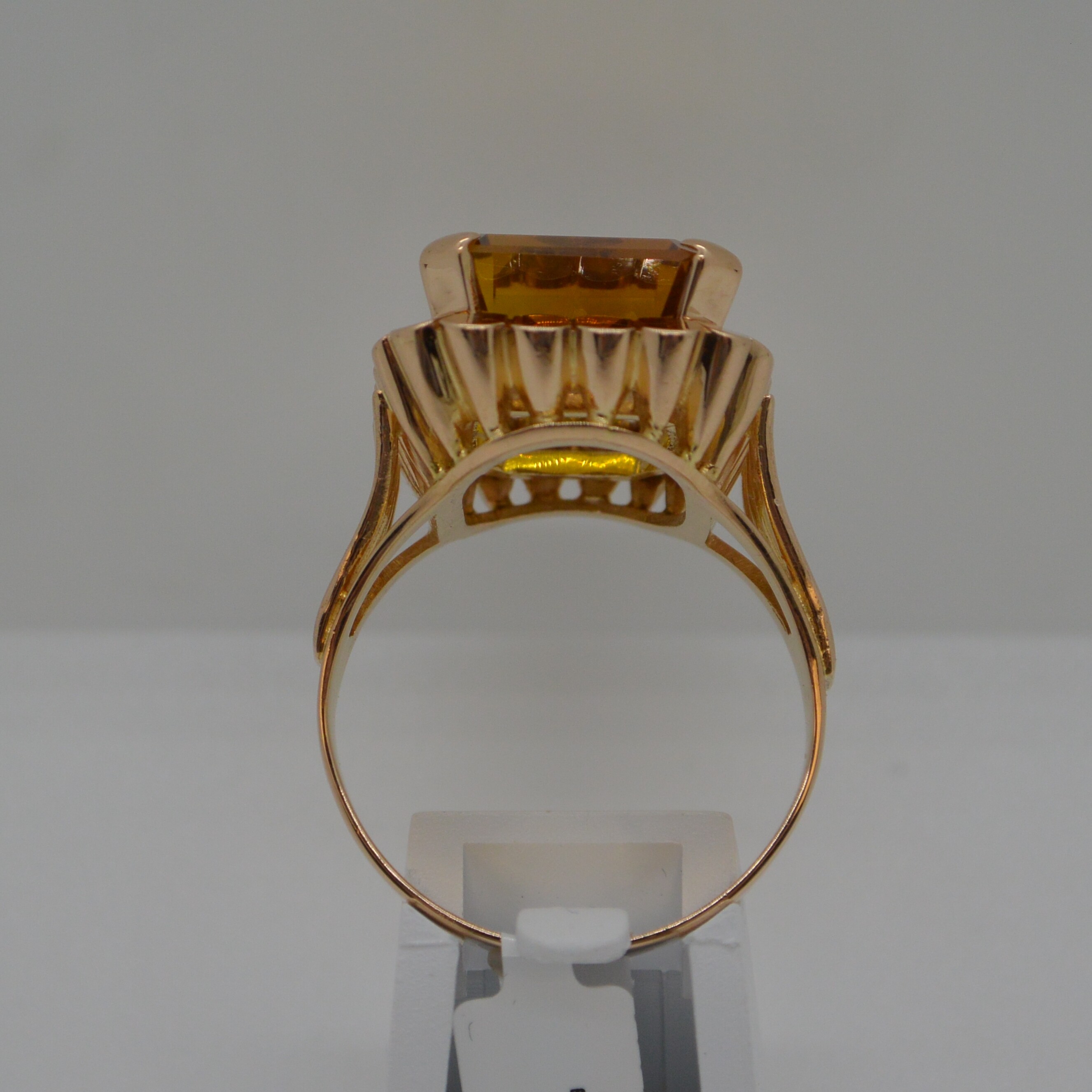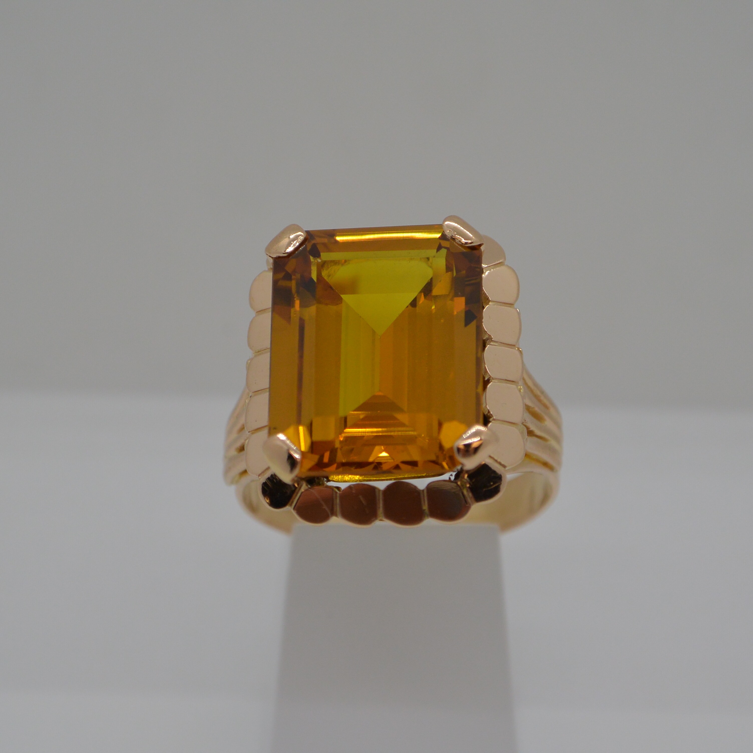 Bague Citrine taille émeraude serti 4 griffes panier fantaisie en or jaune 18kt