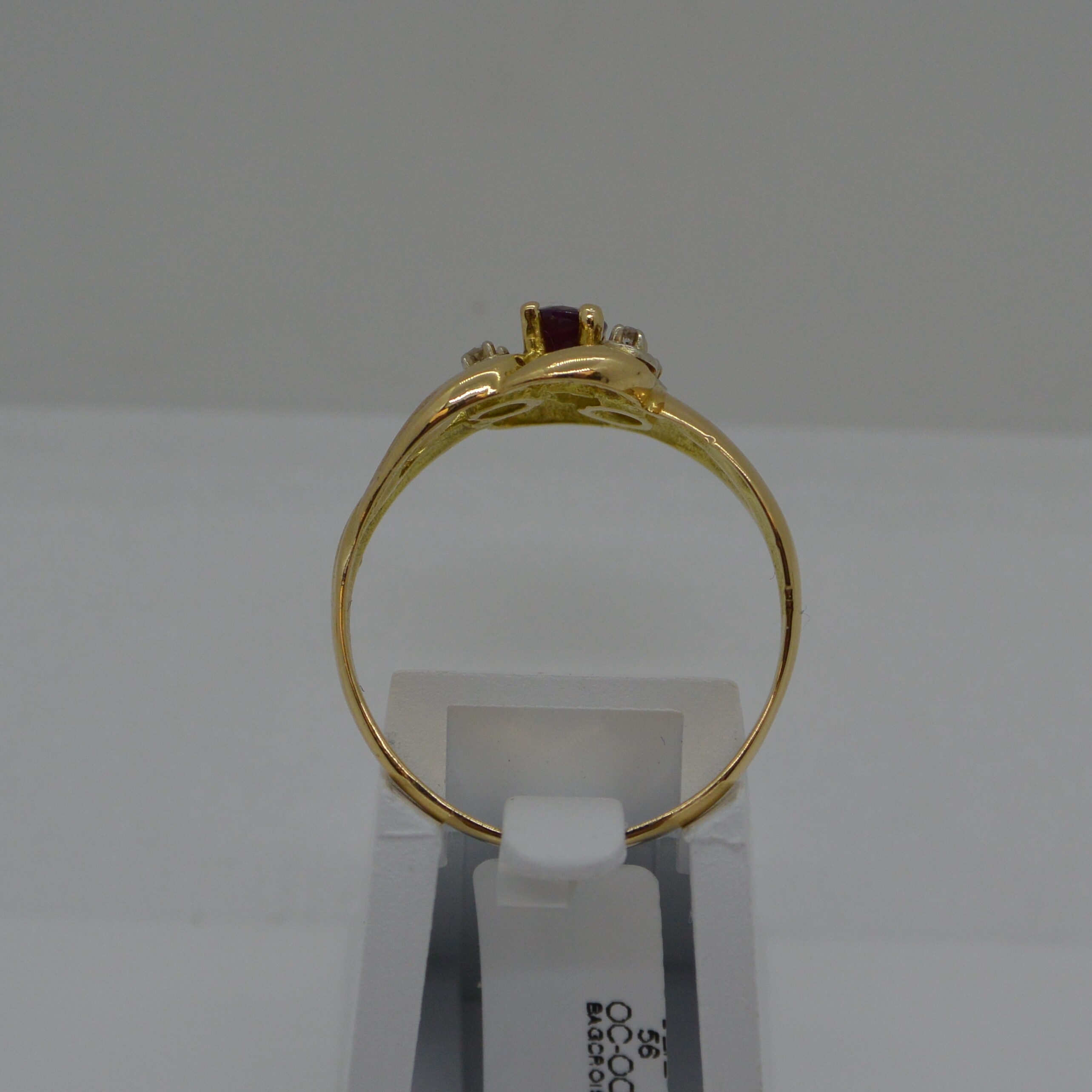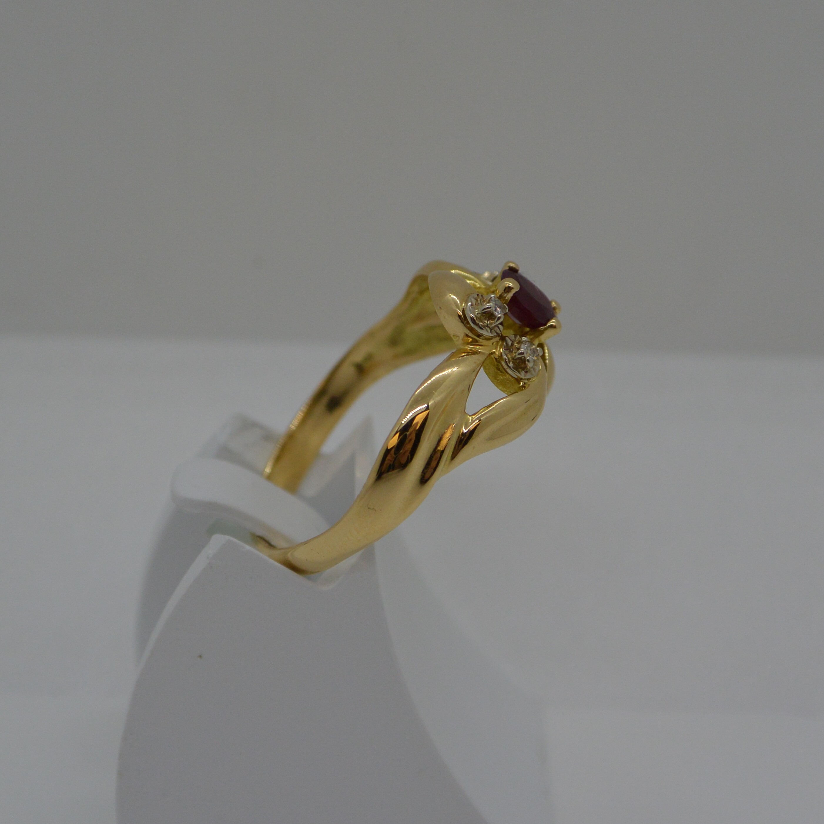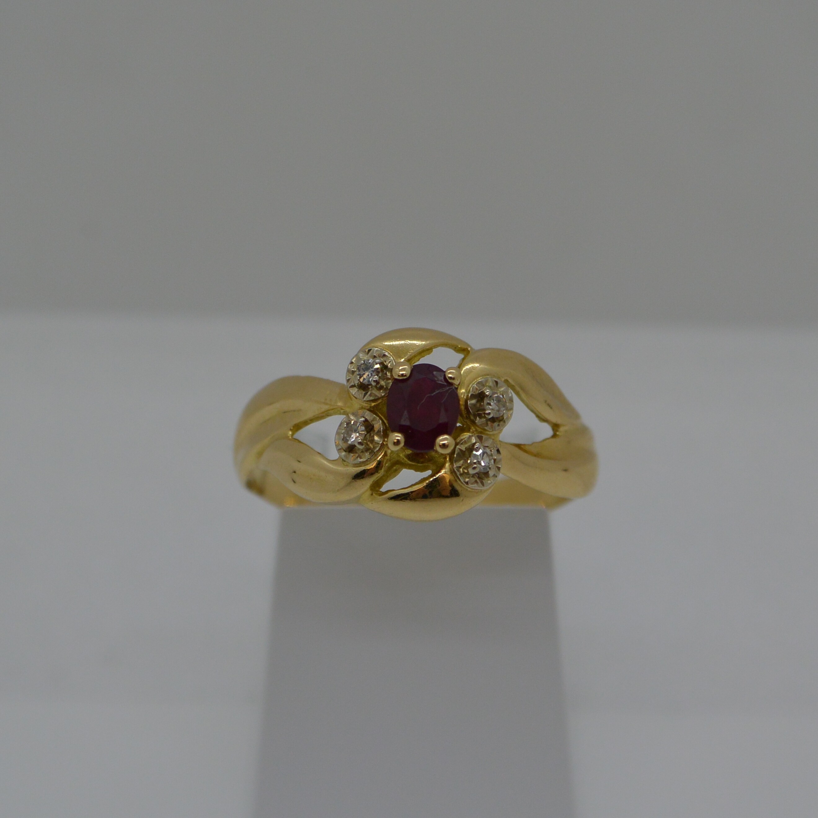 Bague brin croisé fleur 1 Rubis central Ovale et entourage 4 Diamants en or jaune 18kt