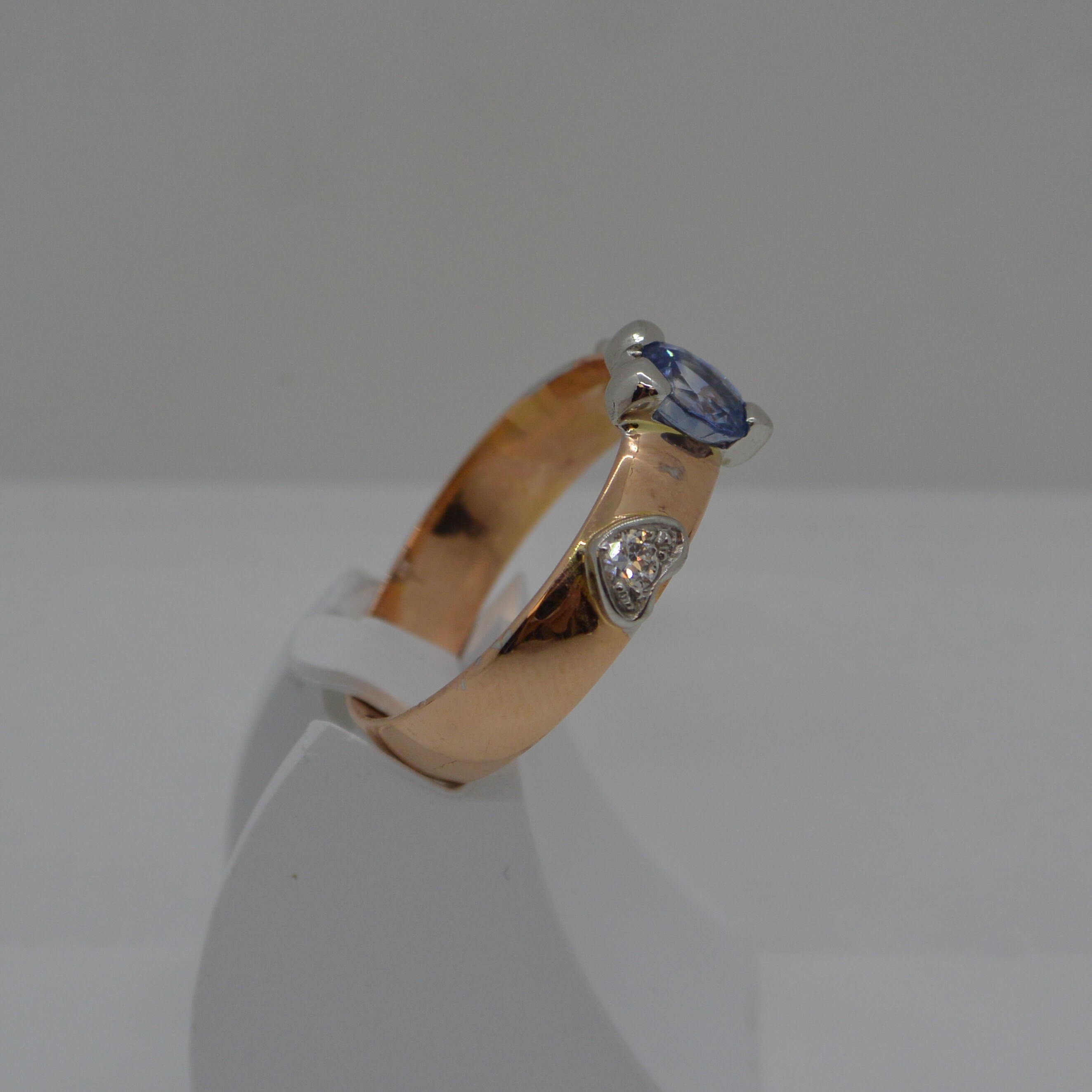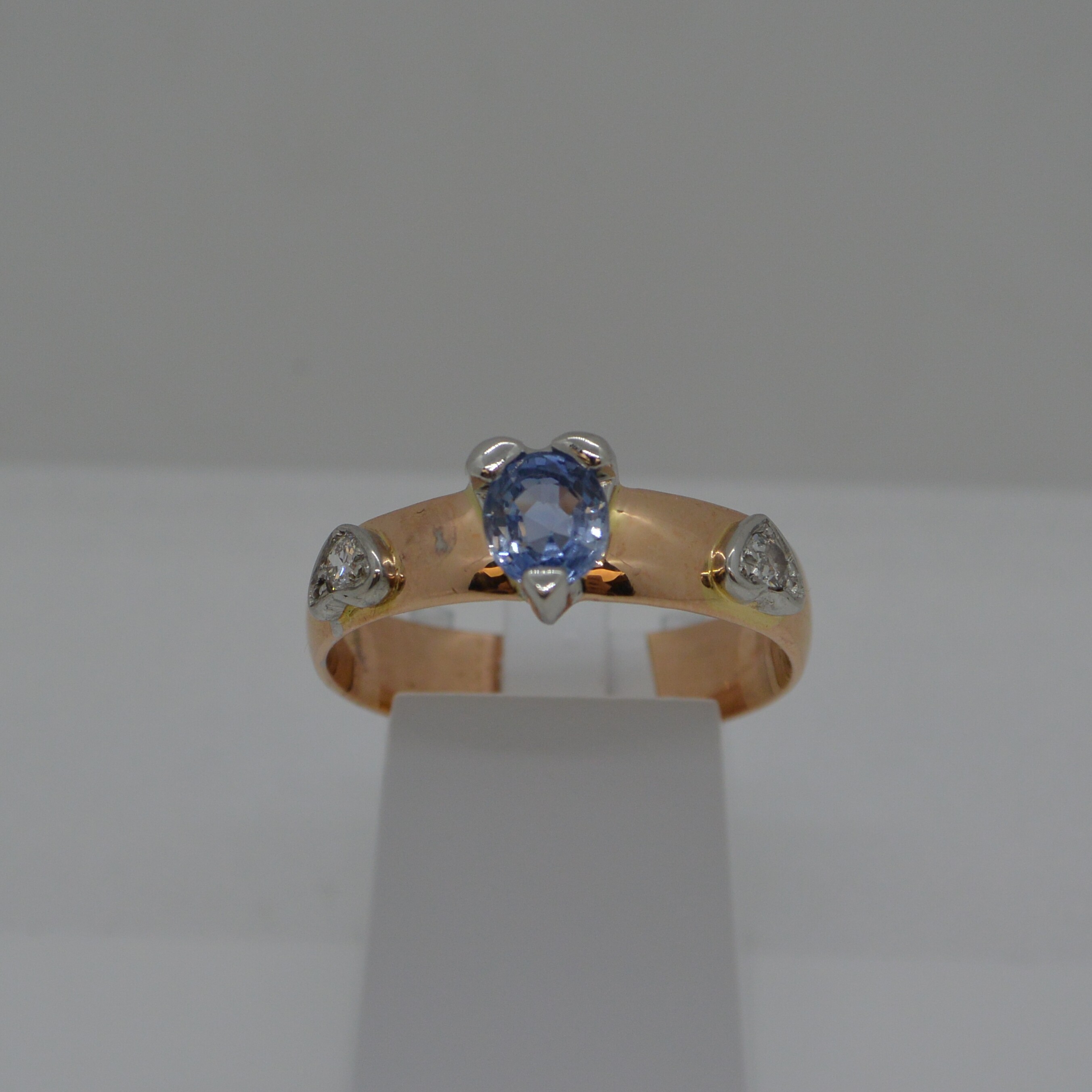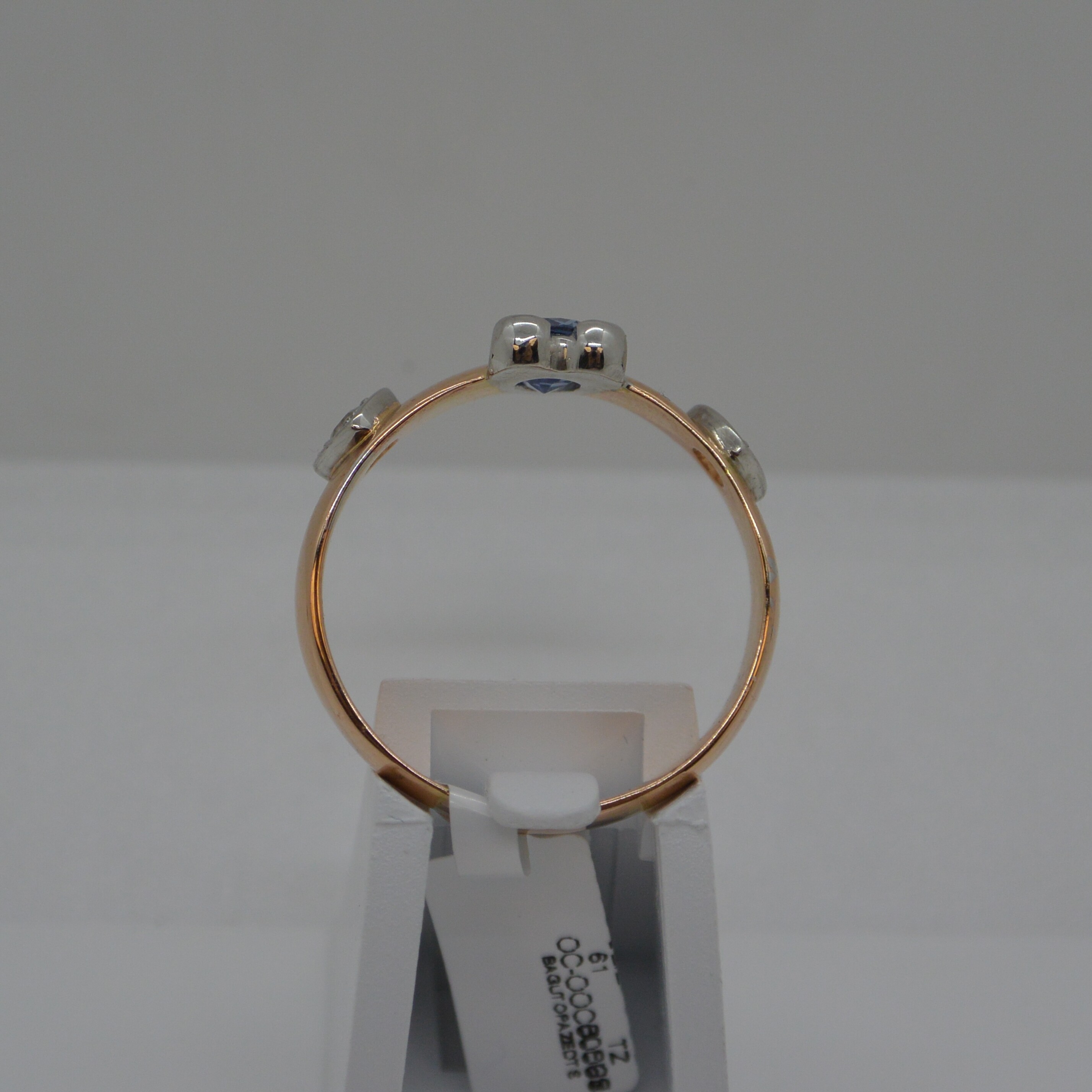 Bague Fantaisie Topaze Bleue Ovale serti 3 griffes et 1 Diamant de chaque côté serti griffes or rose 18kt et rhodiage