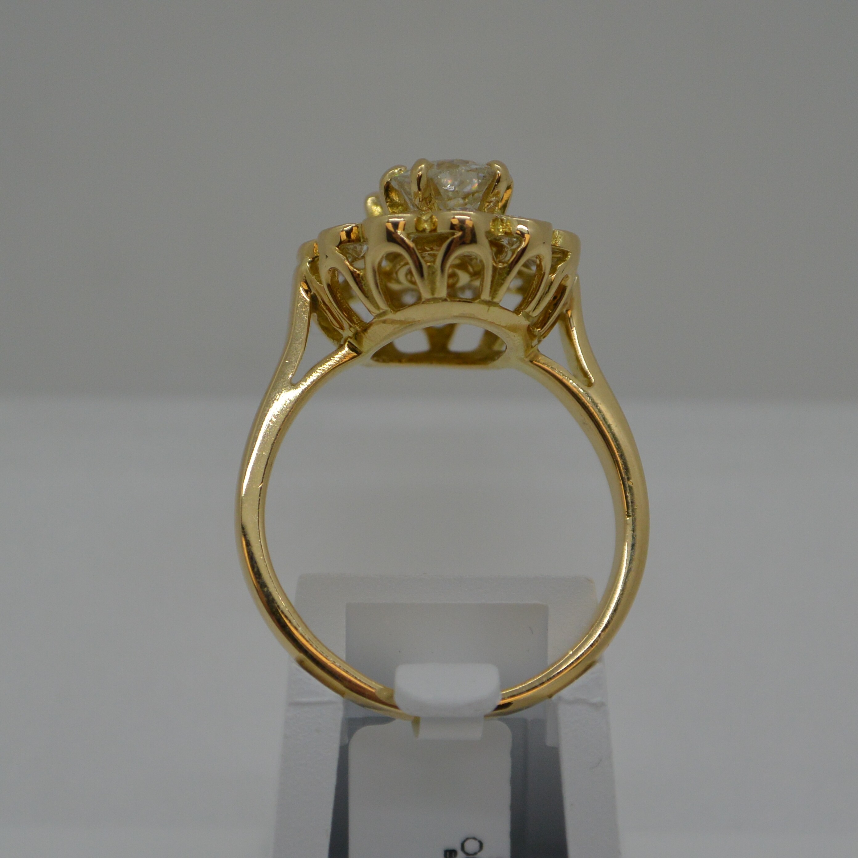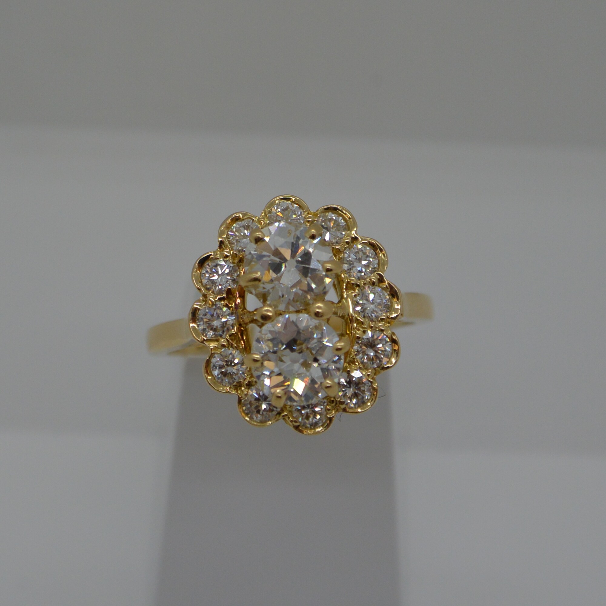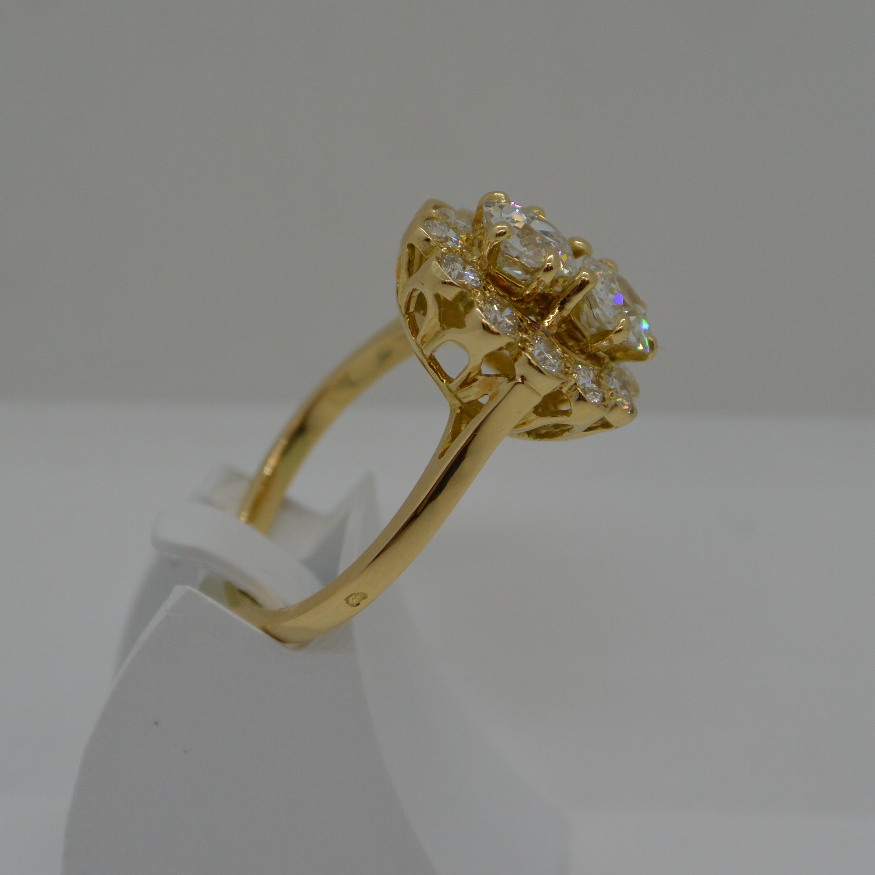 Bague forme fleur avec 2 Diamants centrales de 0.75ct et entourage de 12 Diamants d'environ 0.05ct en or jaune 18kt