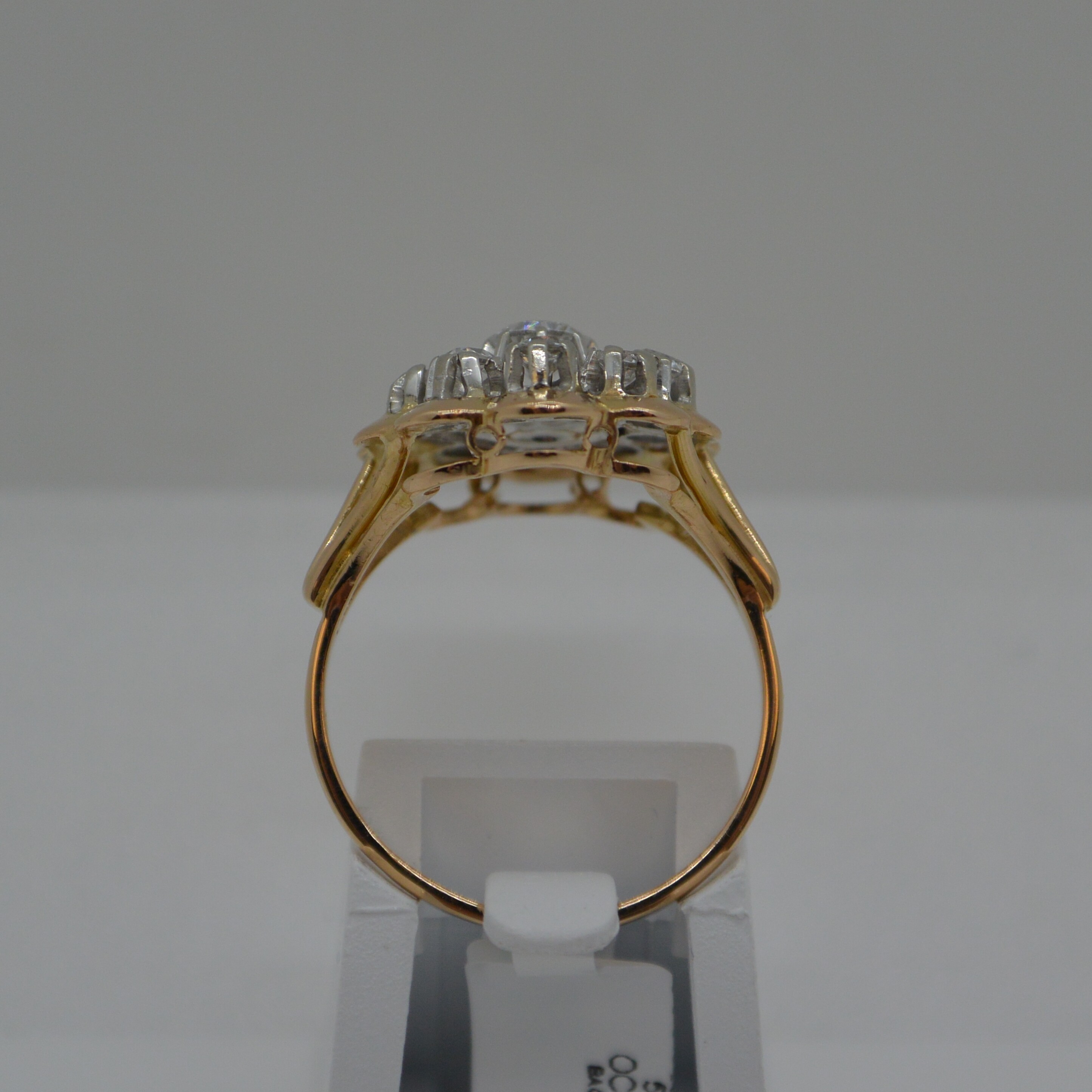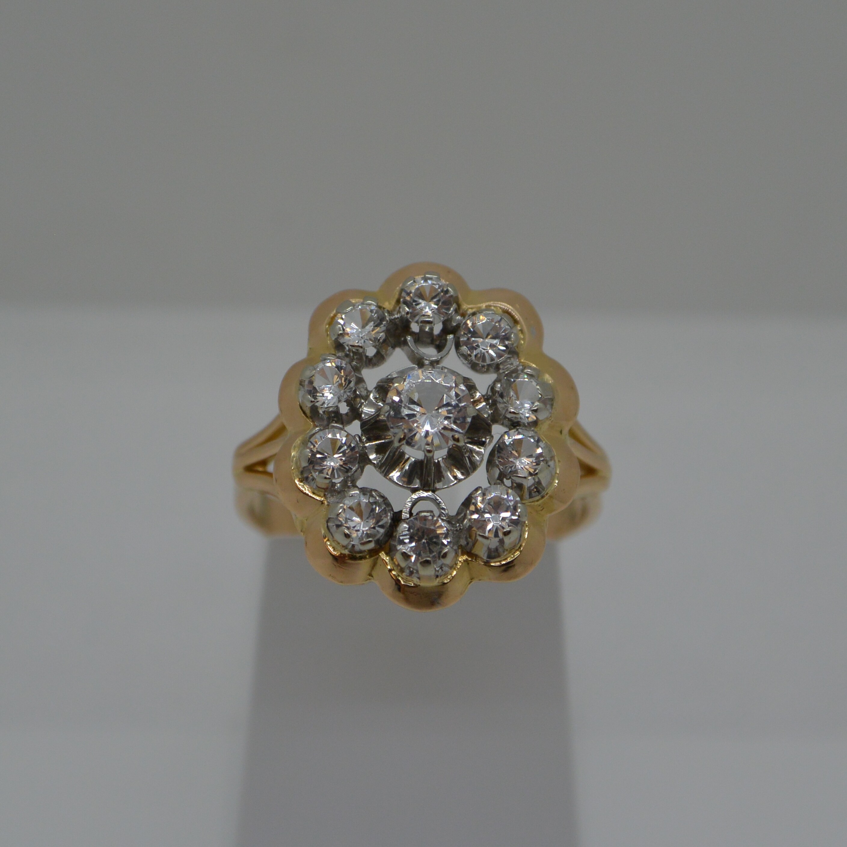 Bague forme fleur avec 1 Zircon rond central diam 3.8mm serti 8 griffes entouré de 10 Zircons diam. 2.6mm serti 6 griffes en or rose 18kt