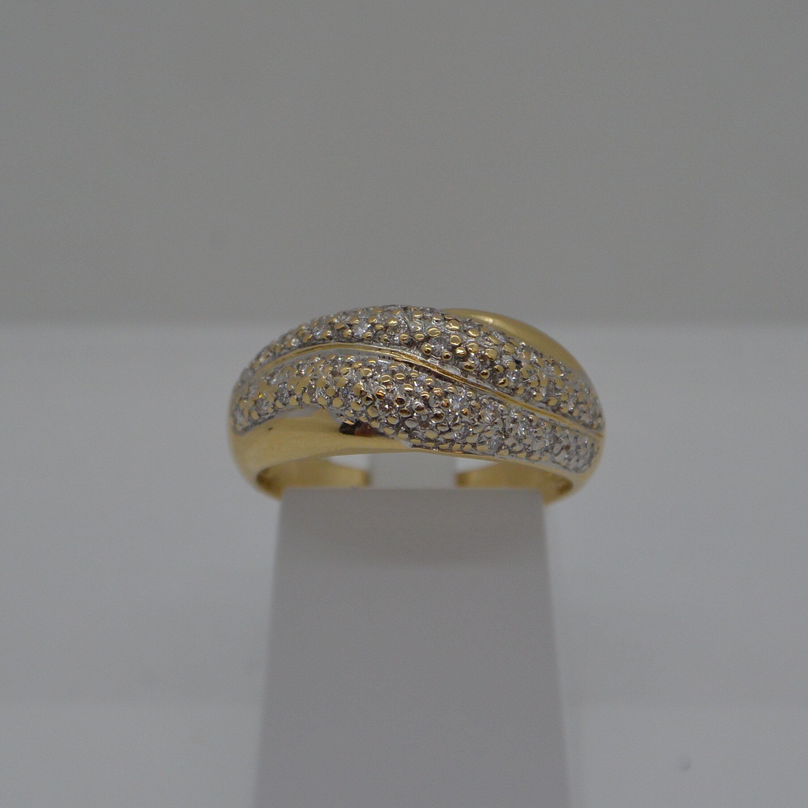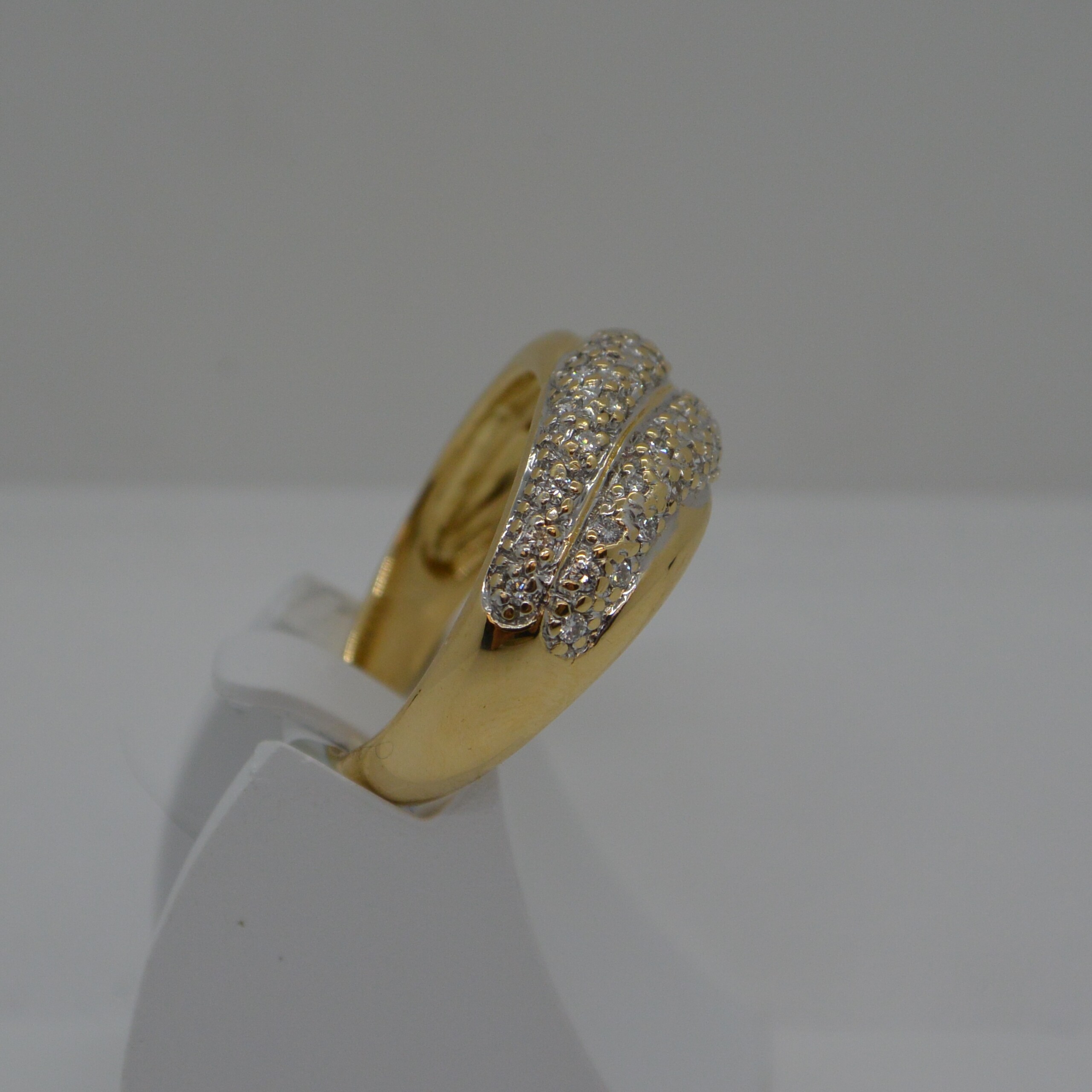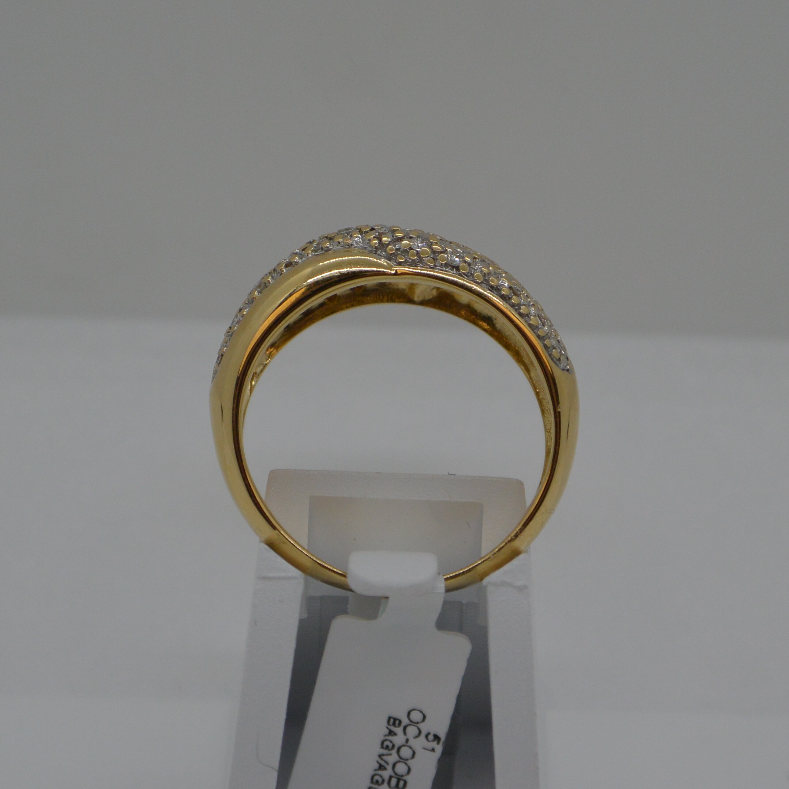 Bague 2 vagues sertis de diamants serti griffes en or jaune 18kt et rhodiage