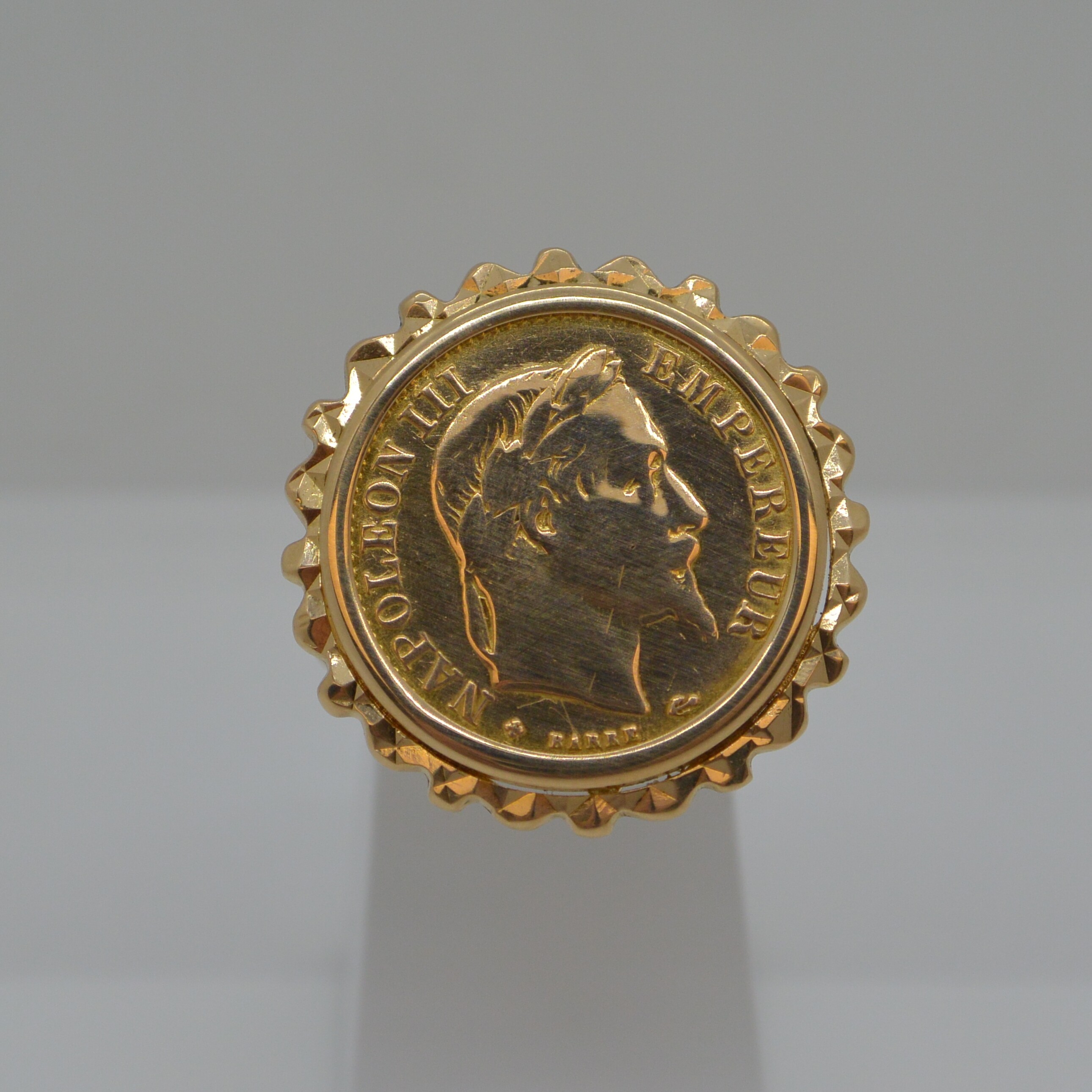 Bague Porte Pièce 10 Frs Napoléon III Année 1863 entourage et panier fantaisie 1/2 corps de bague fantaisie en or jaune 18kt