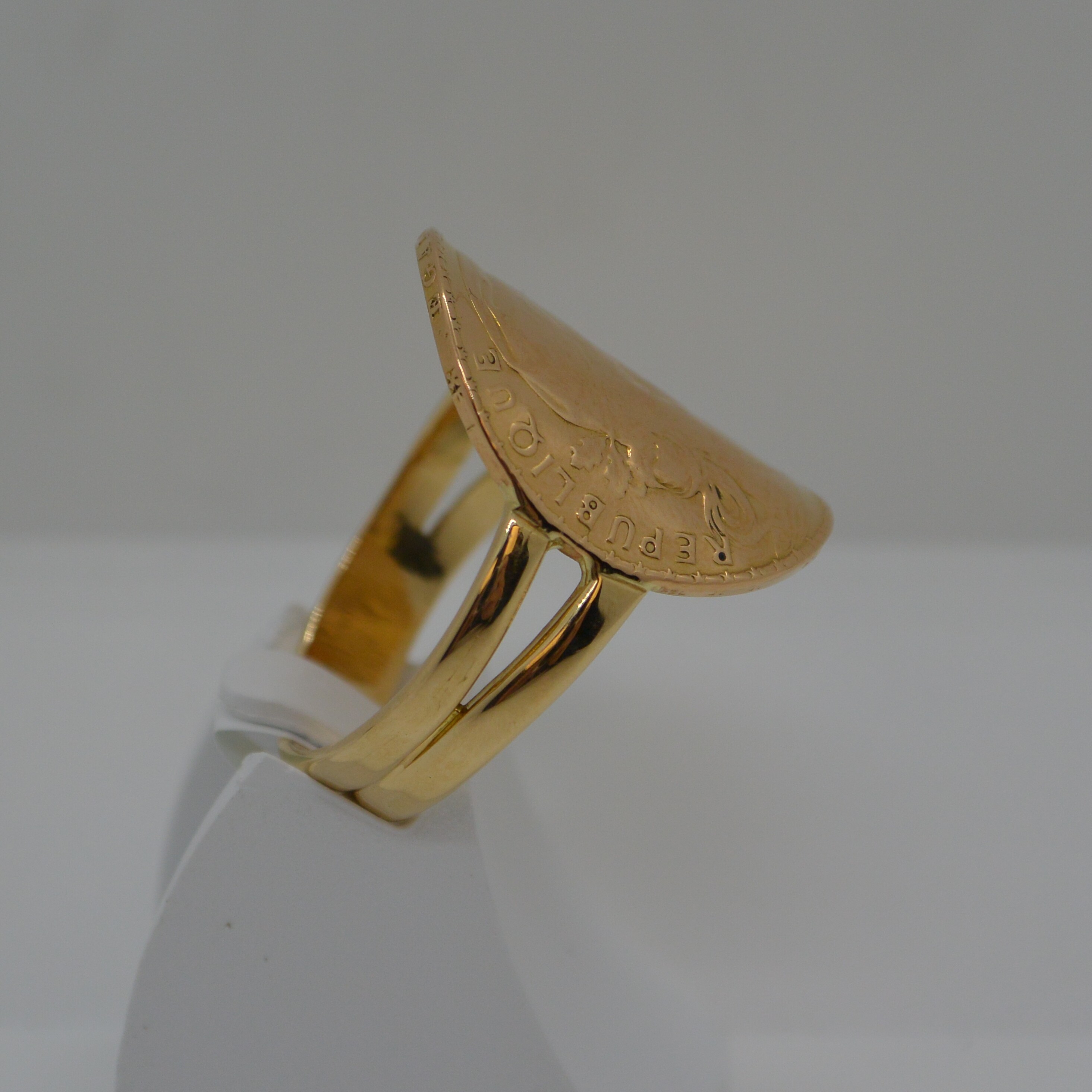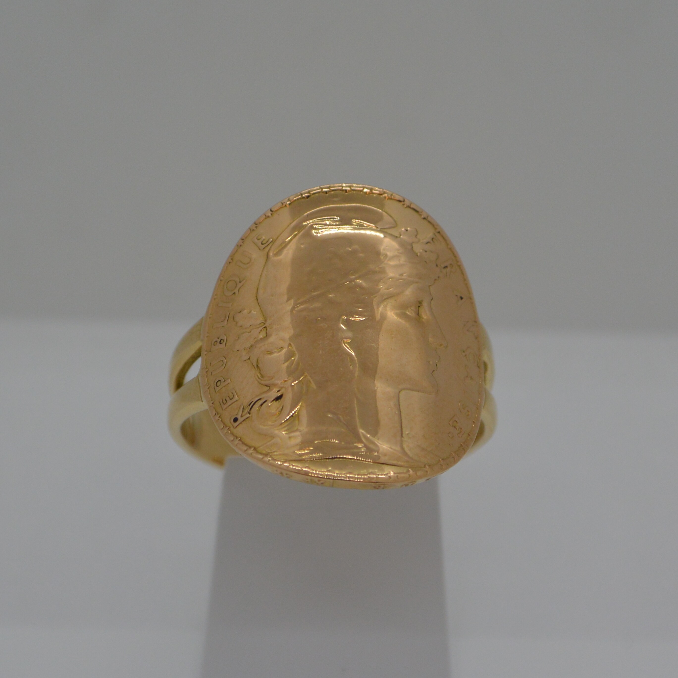 Bague Porte Pièce 20Frs - Année 1913 - corps fourche en or jaune 18kt