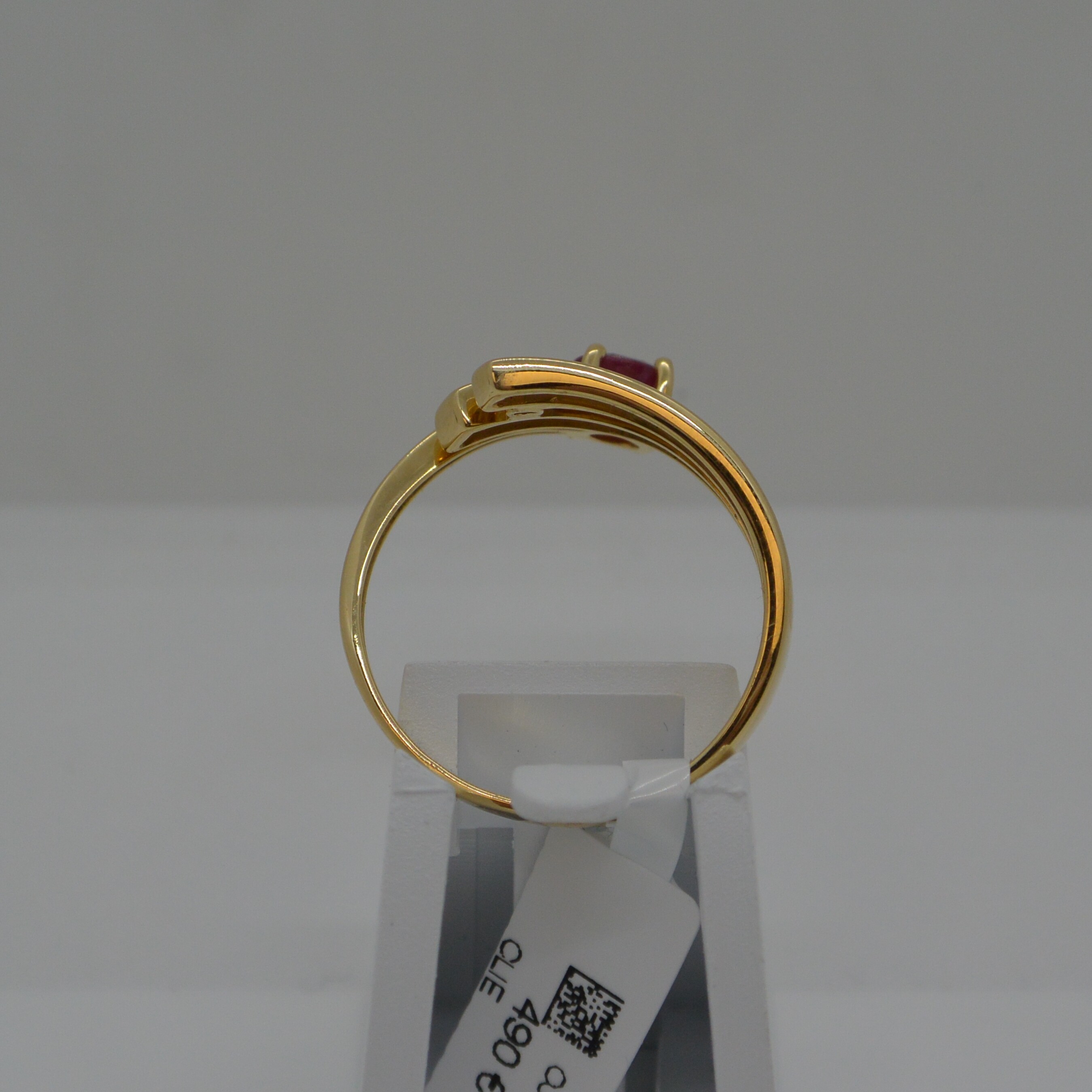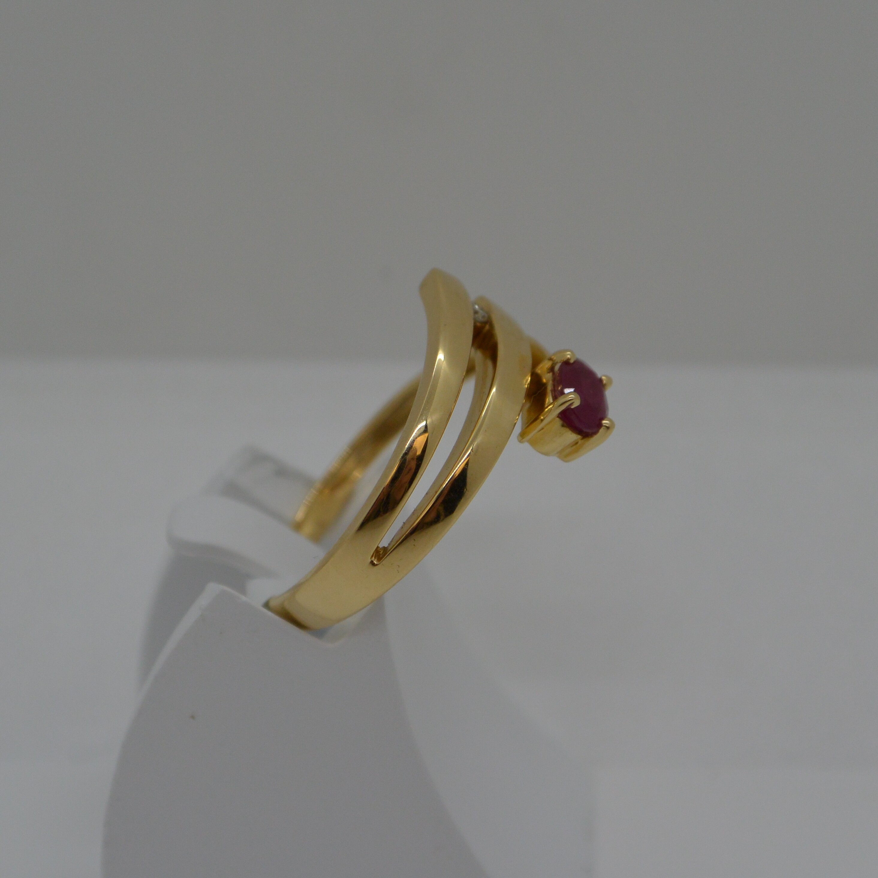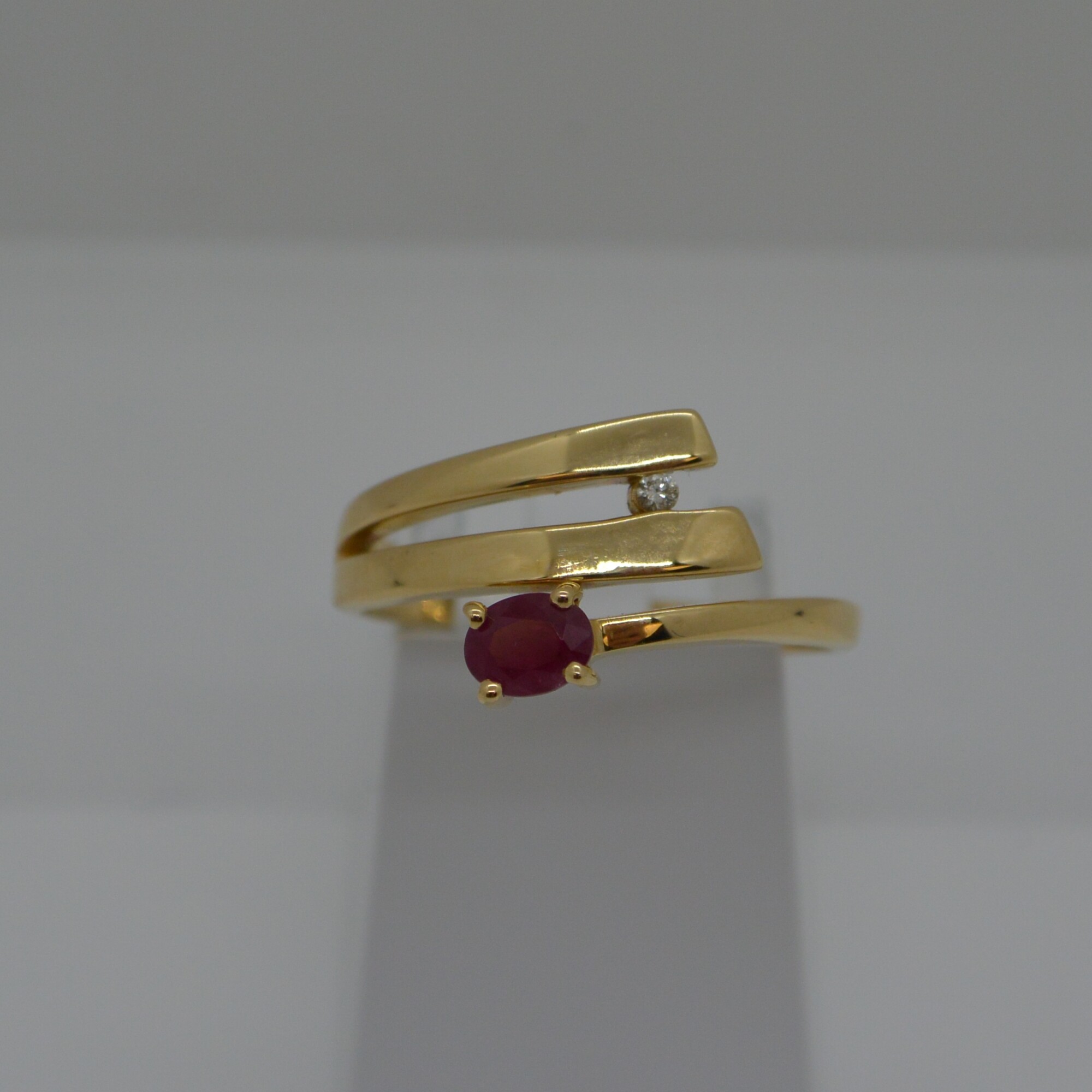 Bague Rubis Ovale serti 4 griffes et 1 Diamant serti clos en or jaune 18kt