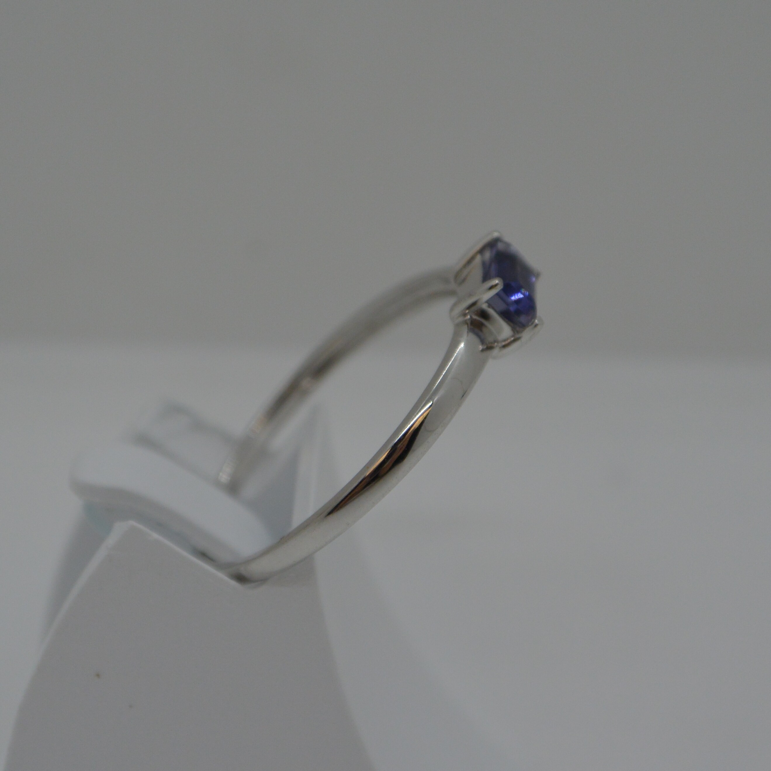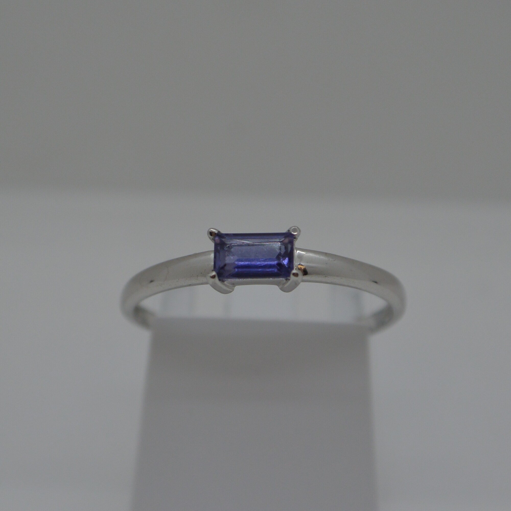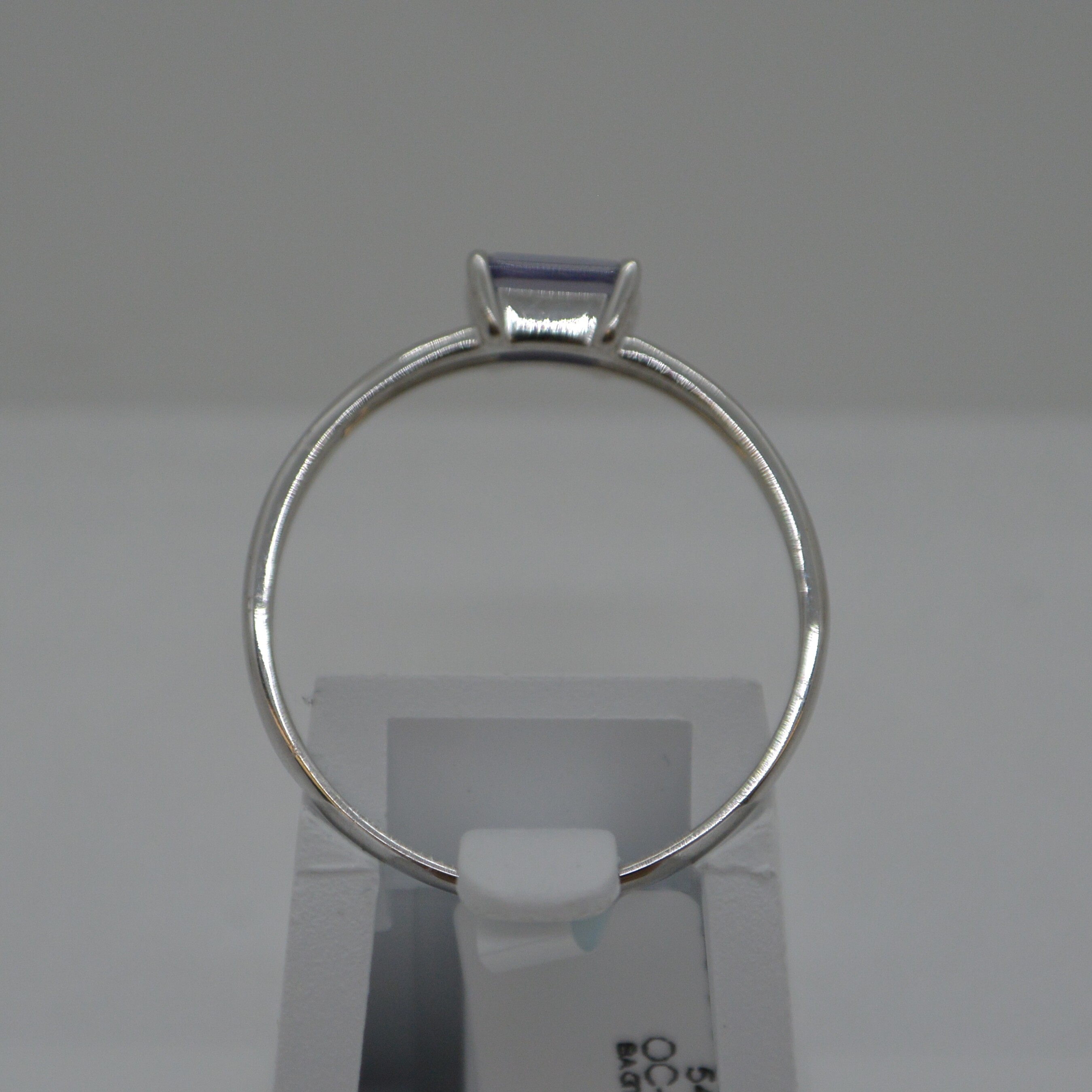 Bague Tanzanite Bleue rectangle à pans coupés serti 4 griffes or blanc 18kt
