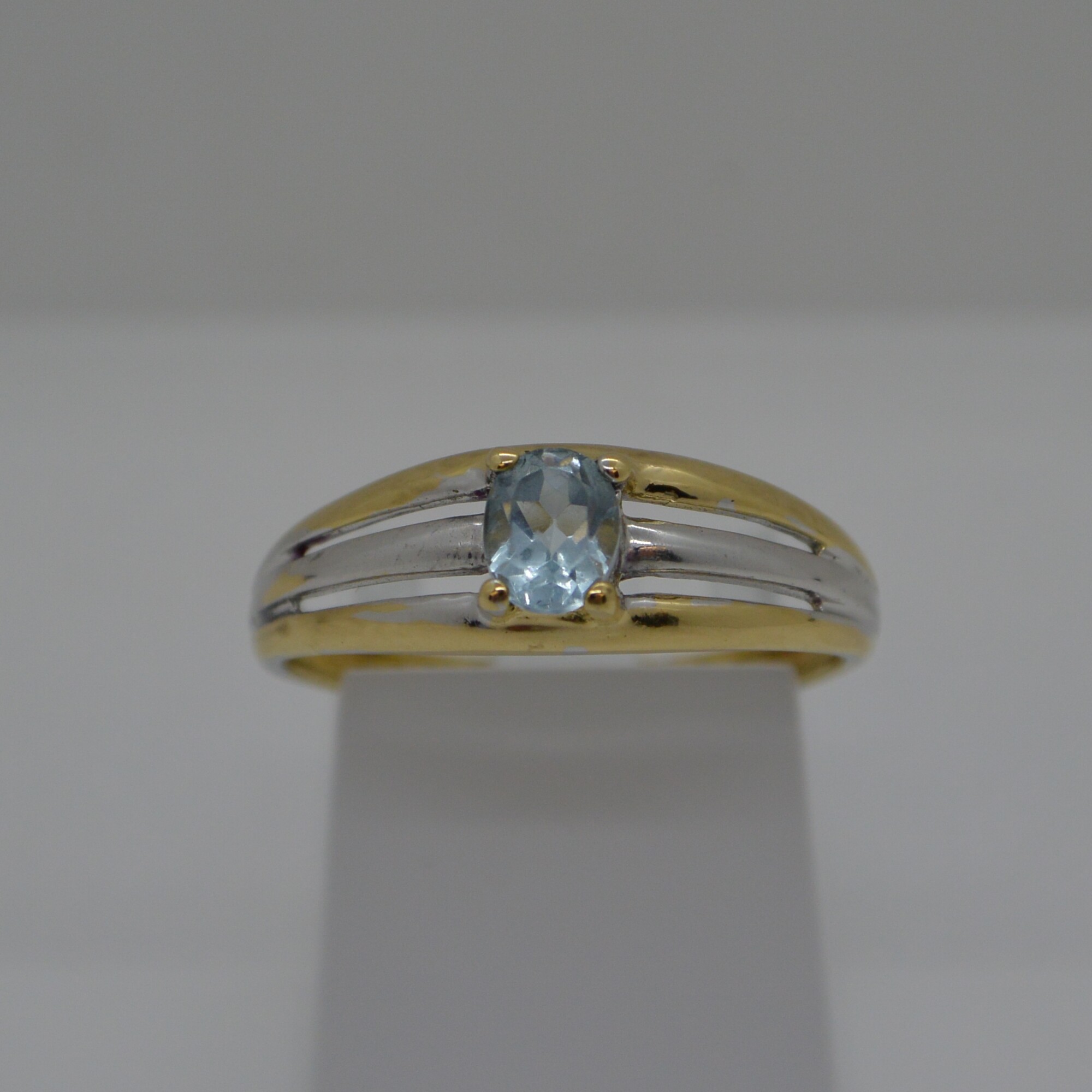Bague Topaze Ovale serti 4 griffes or jaune 18kt et rhodiage