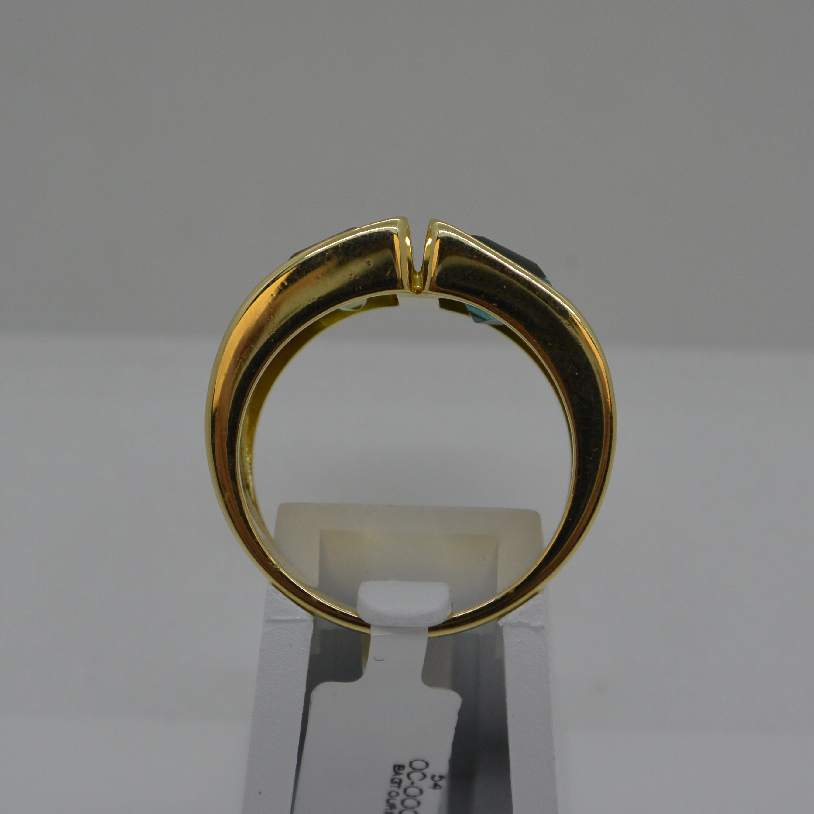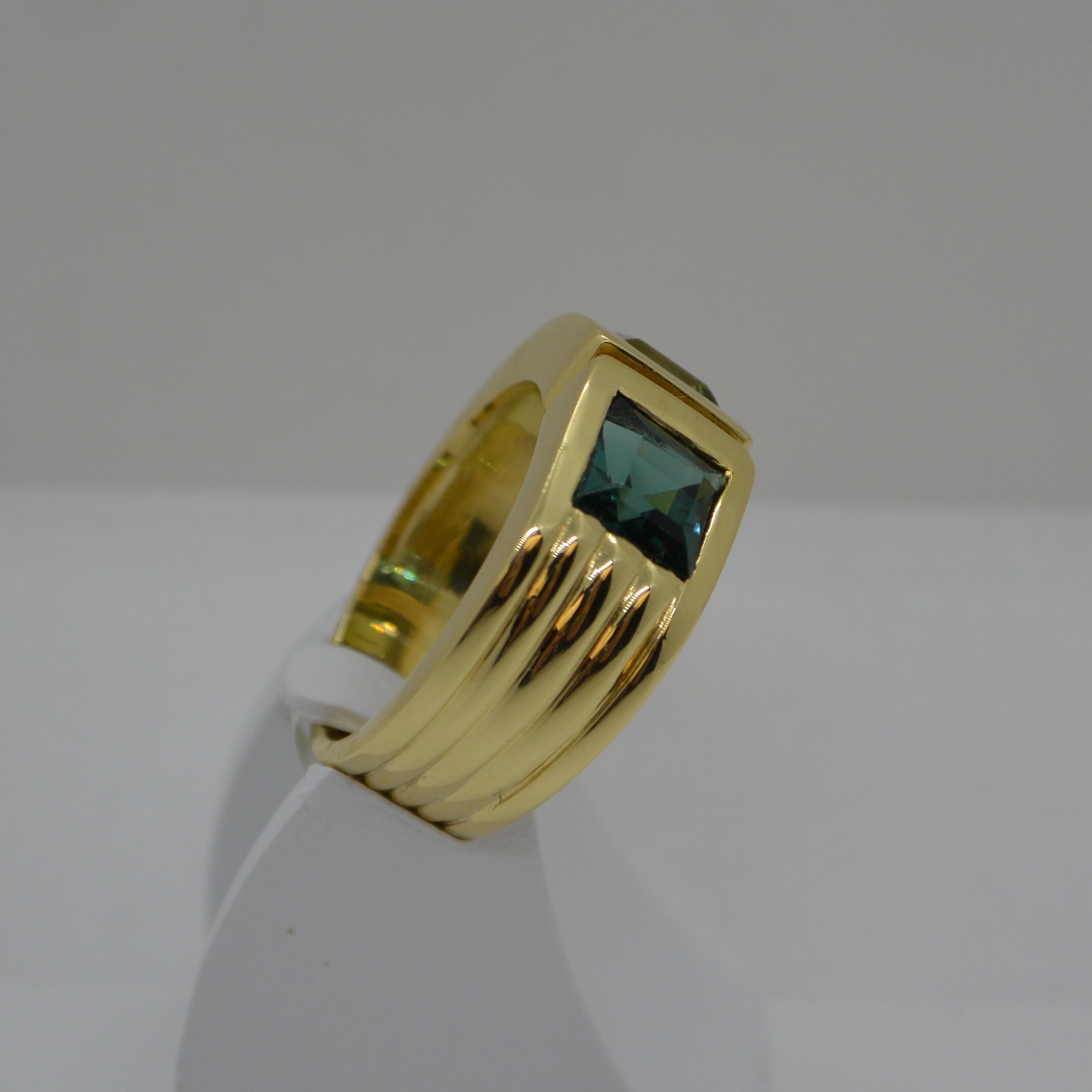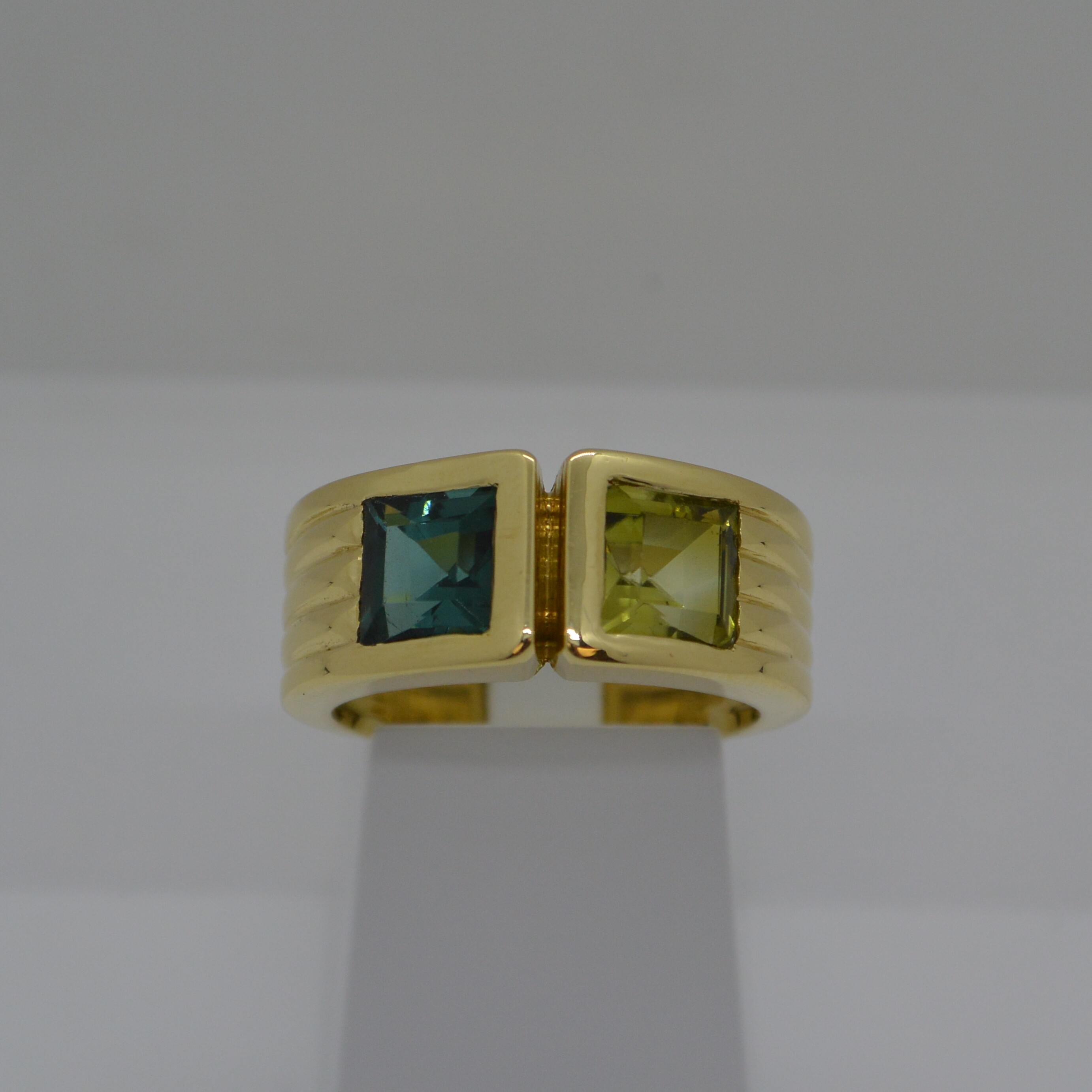 Bague 2 Tourmalines Vertes Carrées sertis clos or jaune 18kt