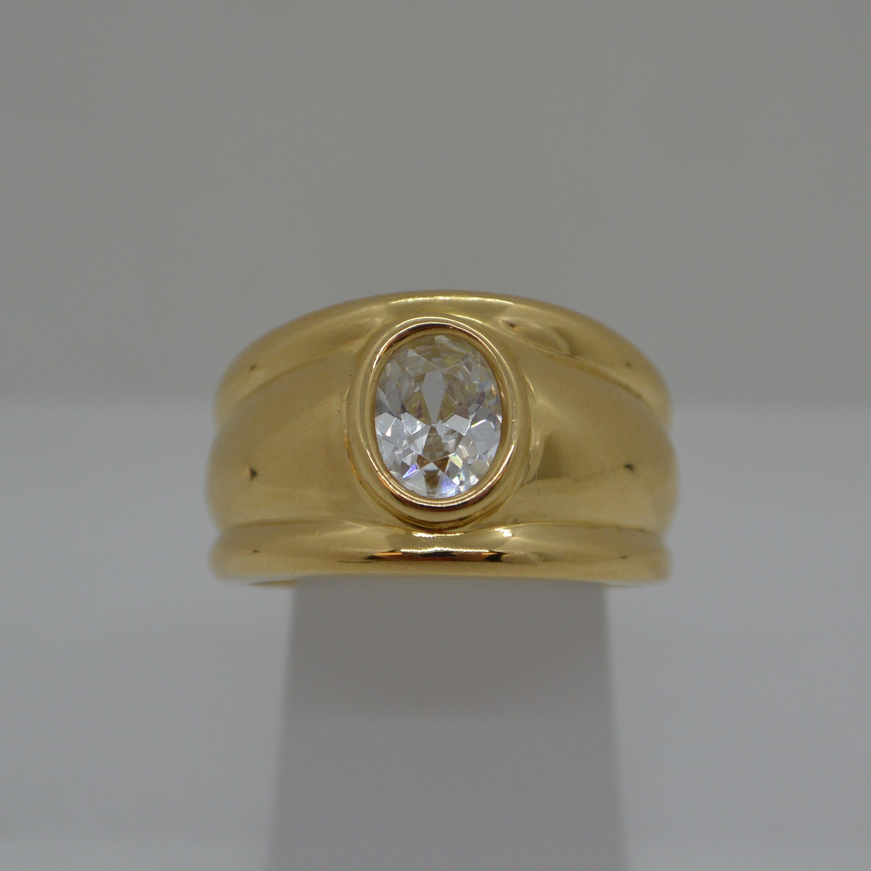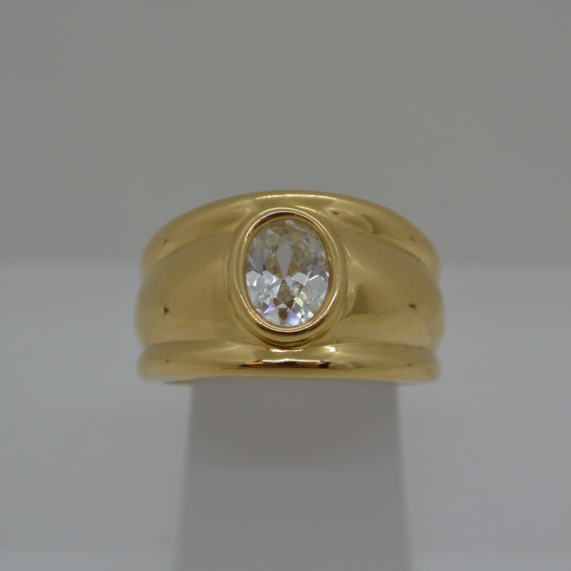 Bague forme Jonc avec Oxyde de Zirconium ovale 8x6mm serti clos corps évidé