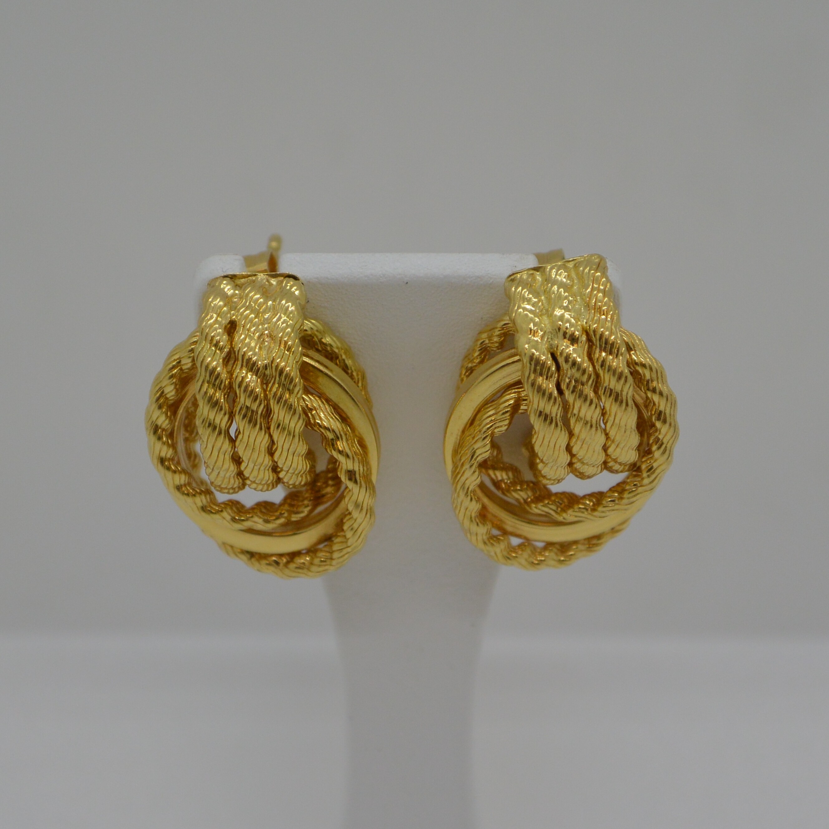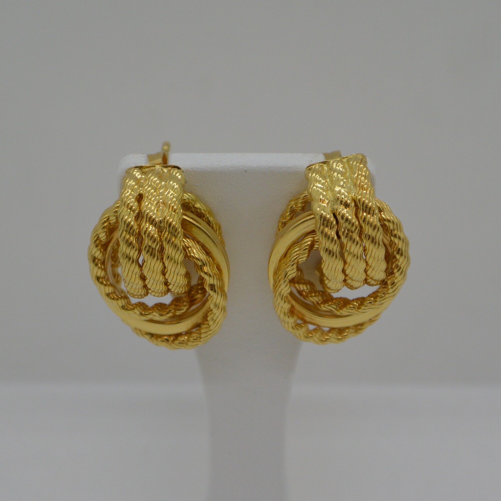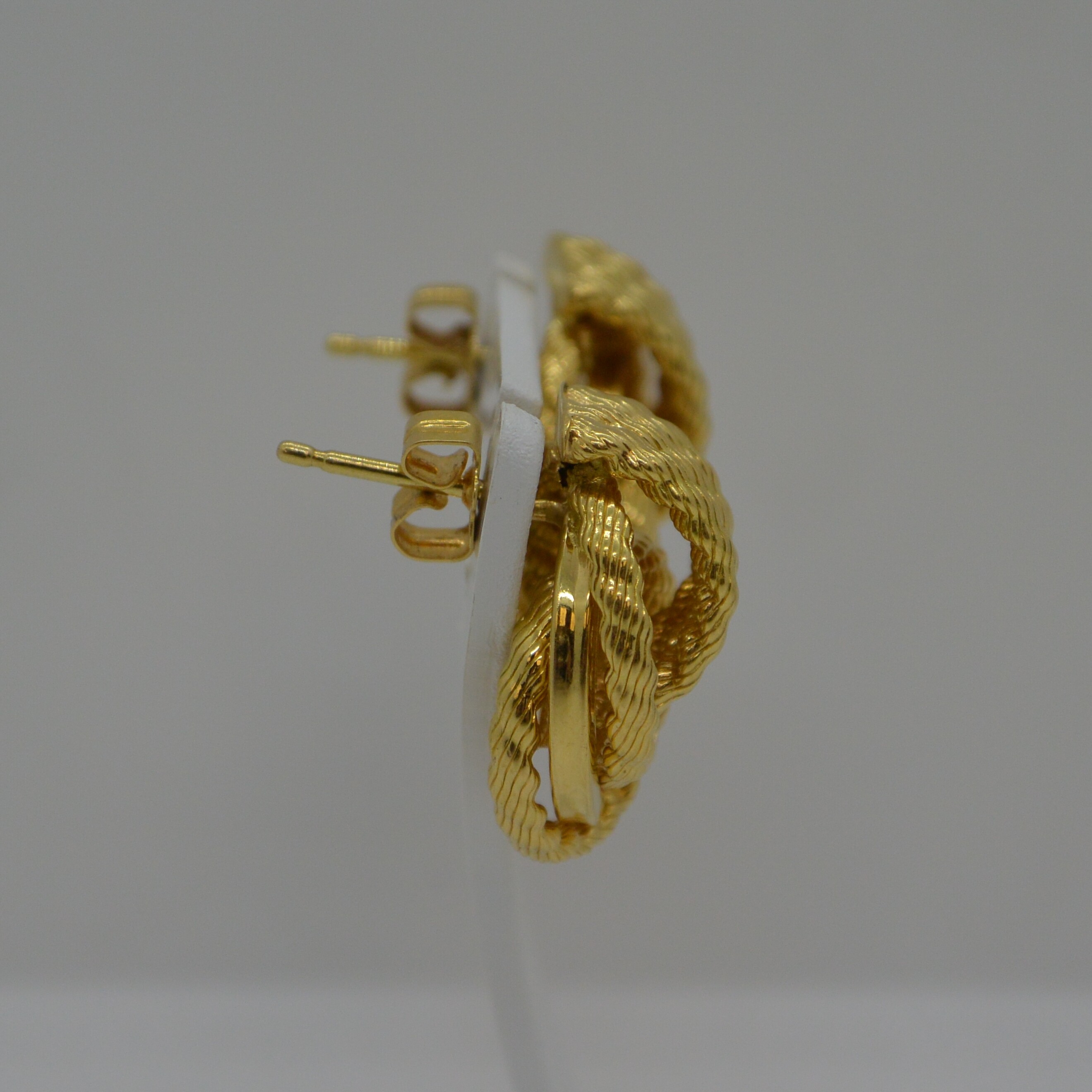 Boucles d'oreilles type demi-créole entrelacé de 3 cercles fixes en or jaune fermoirs poussettes