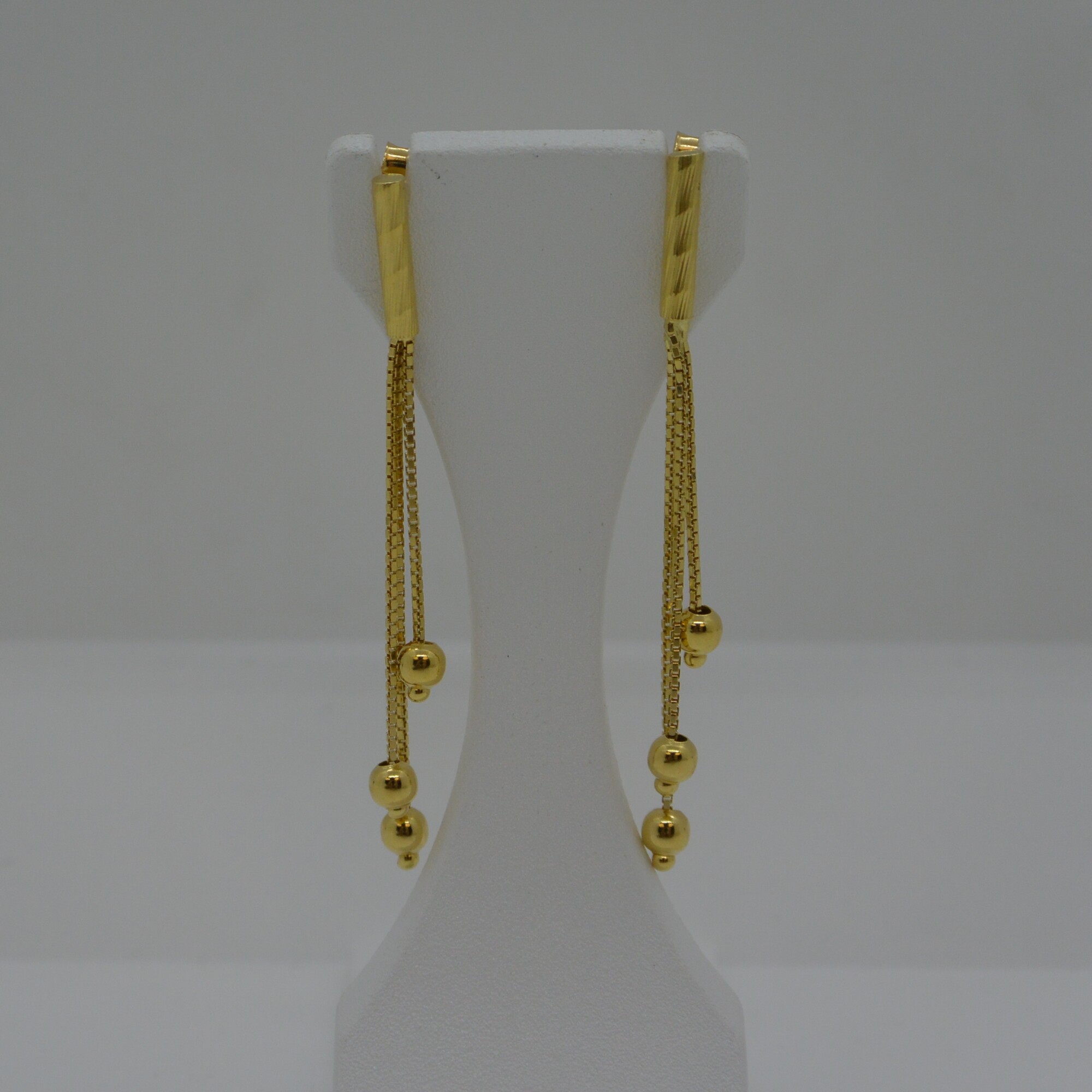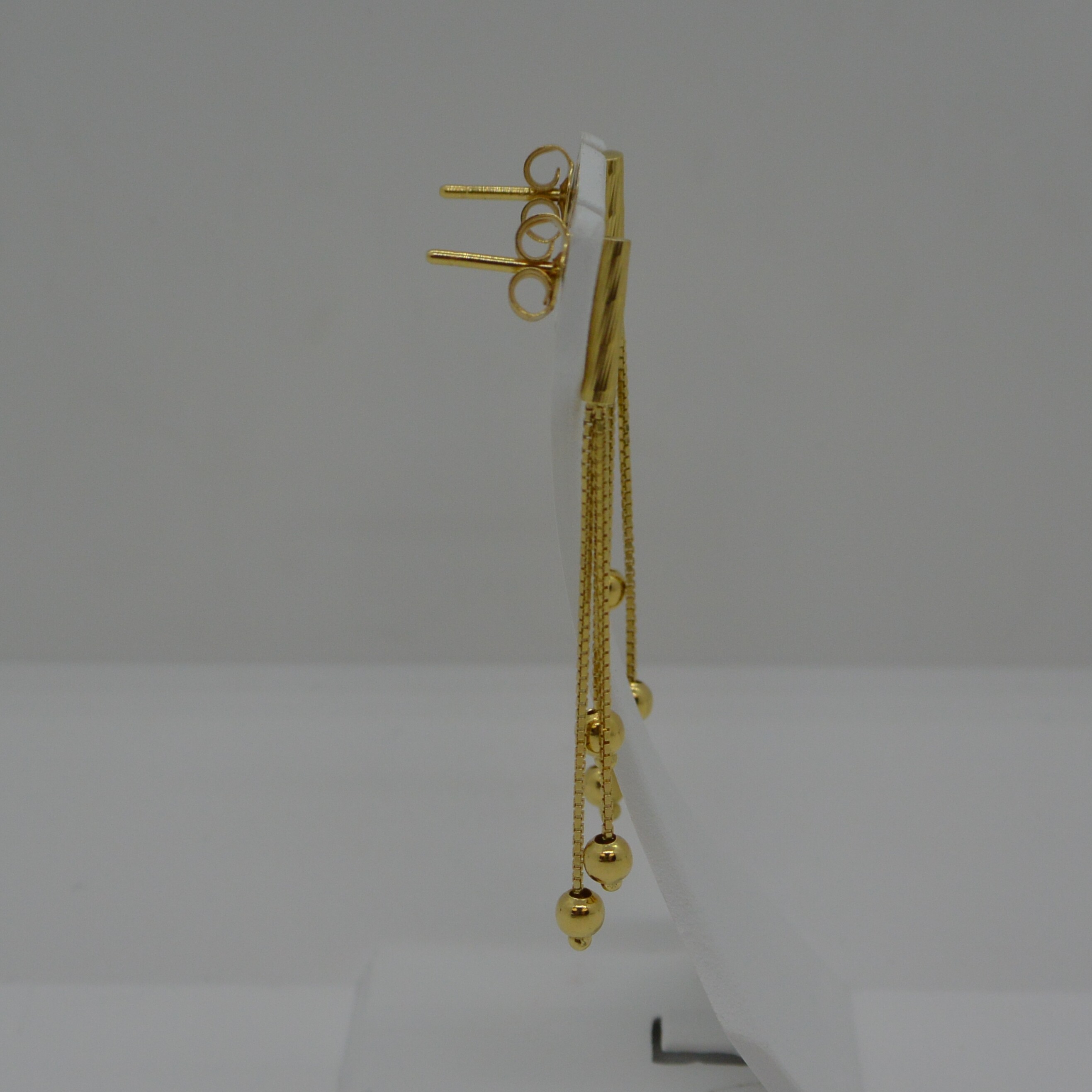 Boucles d'oreilles pendantes barette avec 3 chaines maille vénitienne et 1 boule en bout sur chaque en or jaune 18kt fermoir poussette