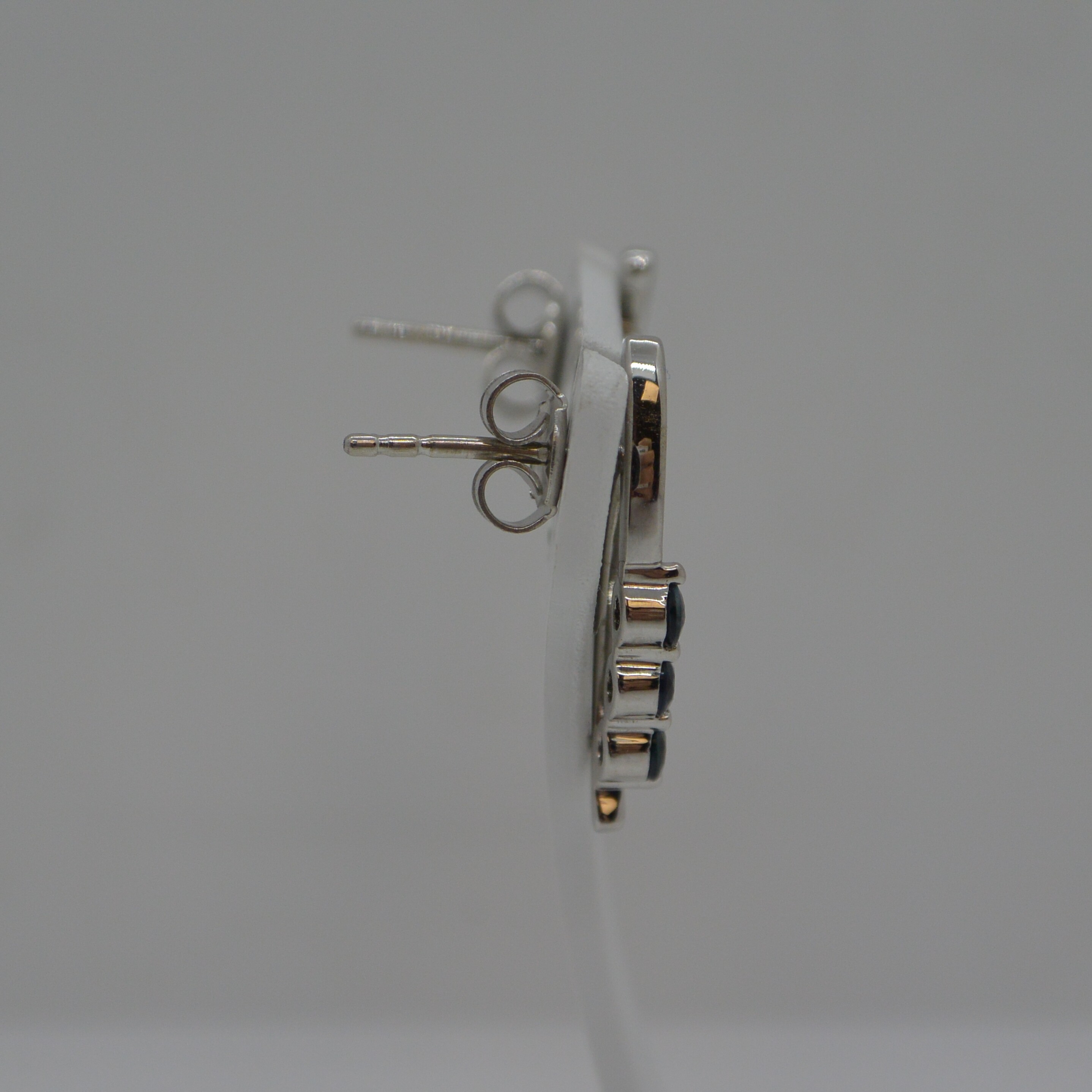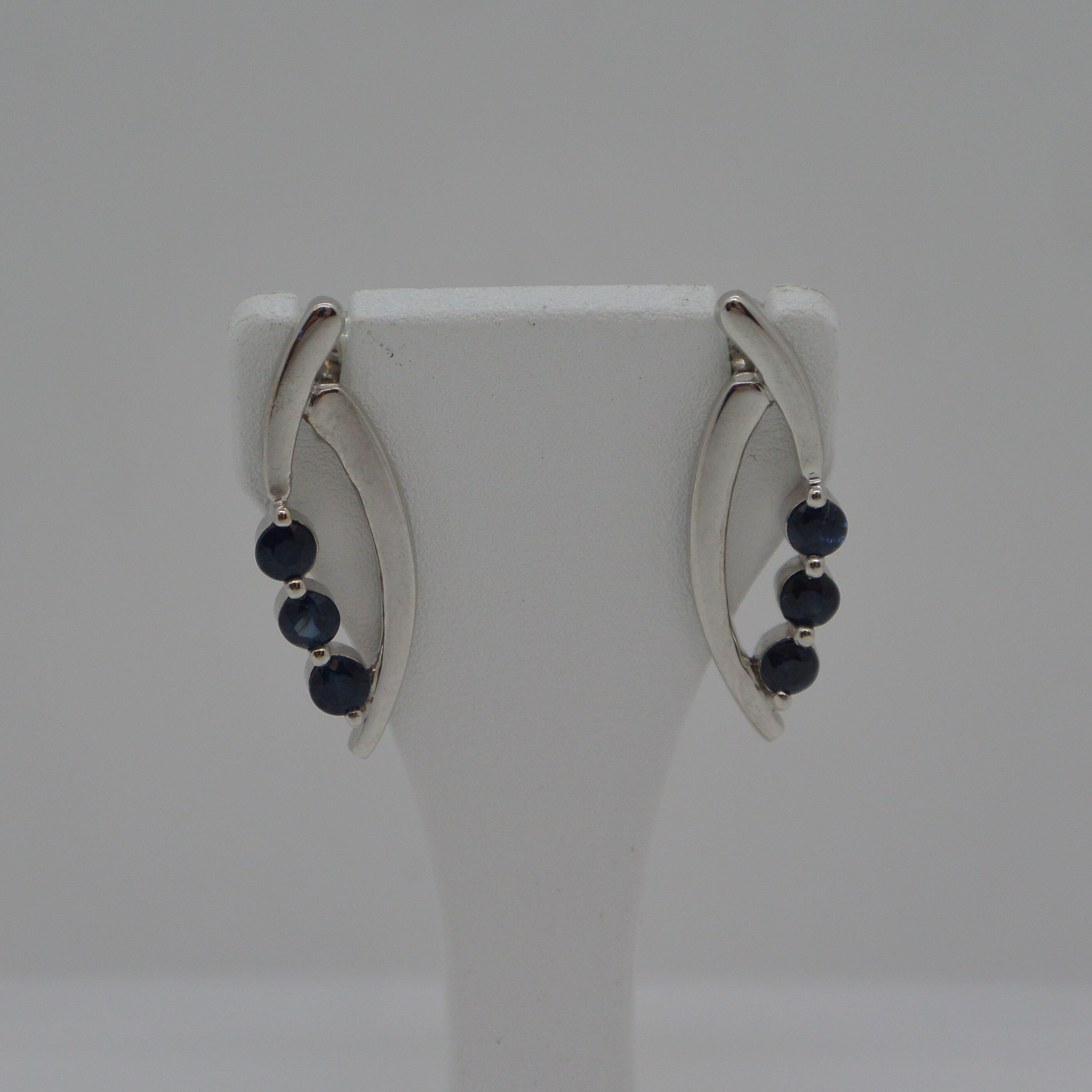 Boucles d'oreilles 3 saphirs serti 2 griffes or gris 18kt fermoir poussette