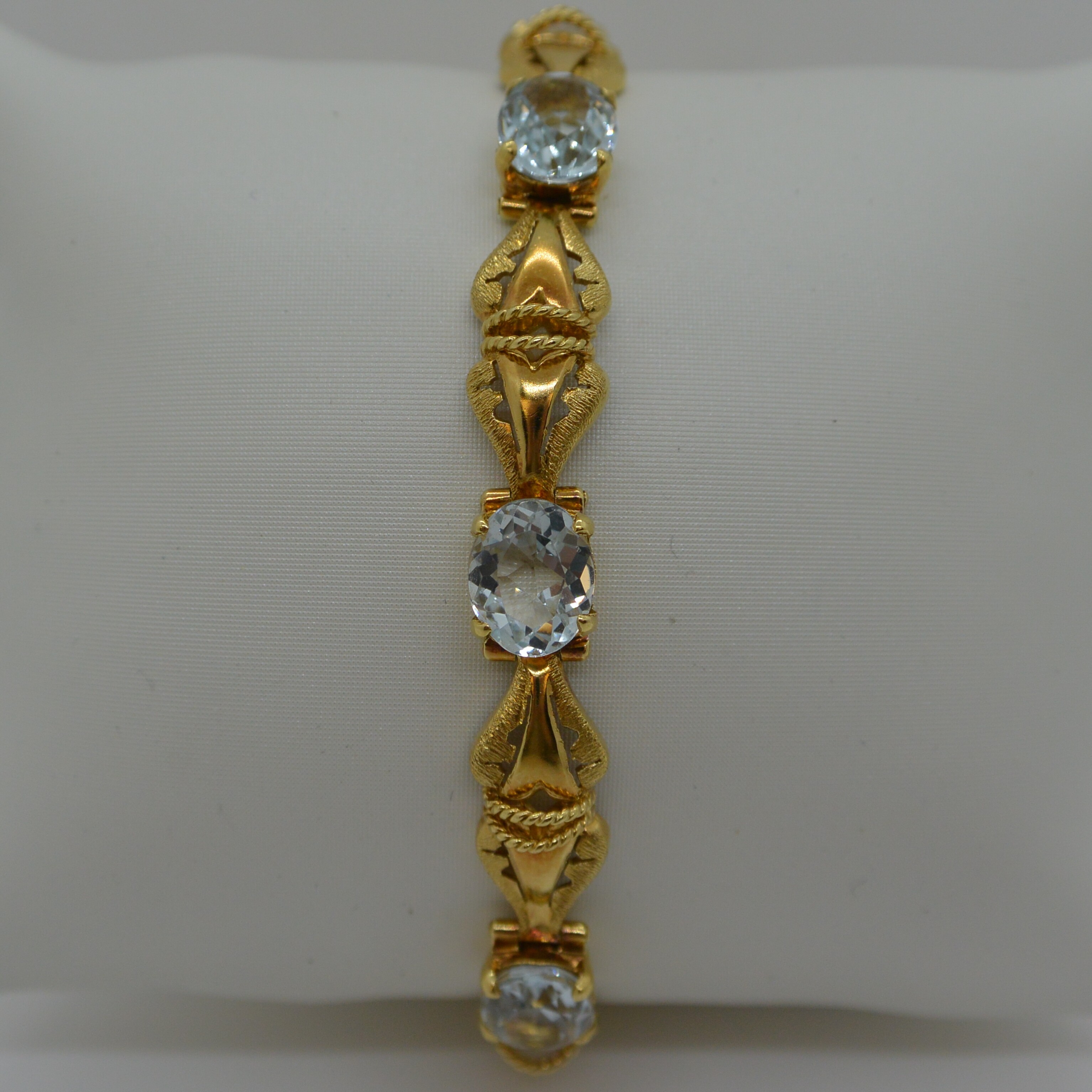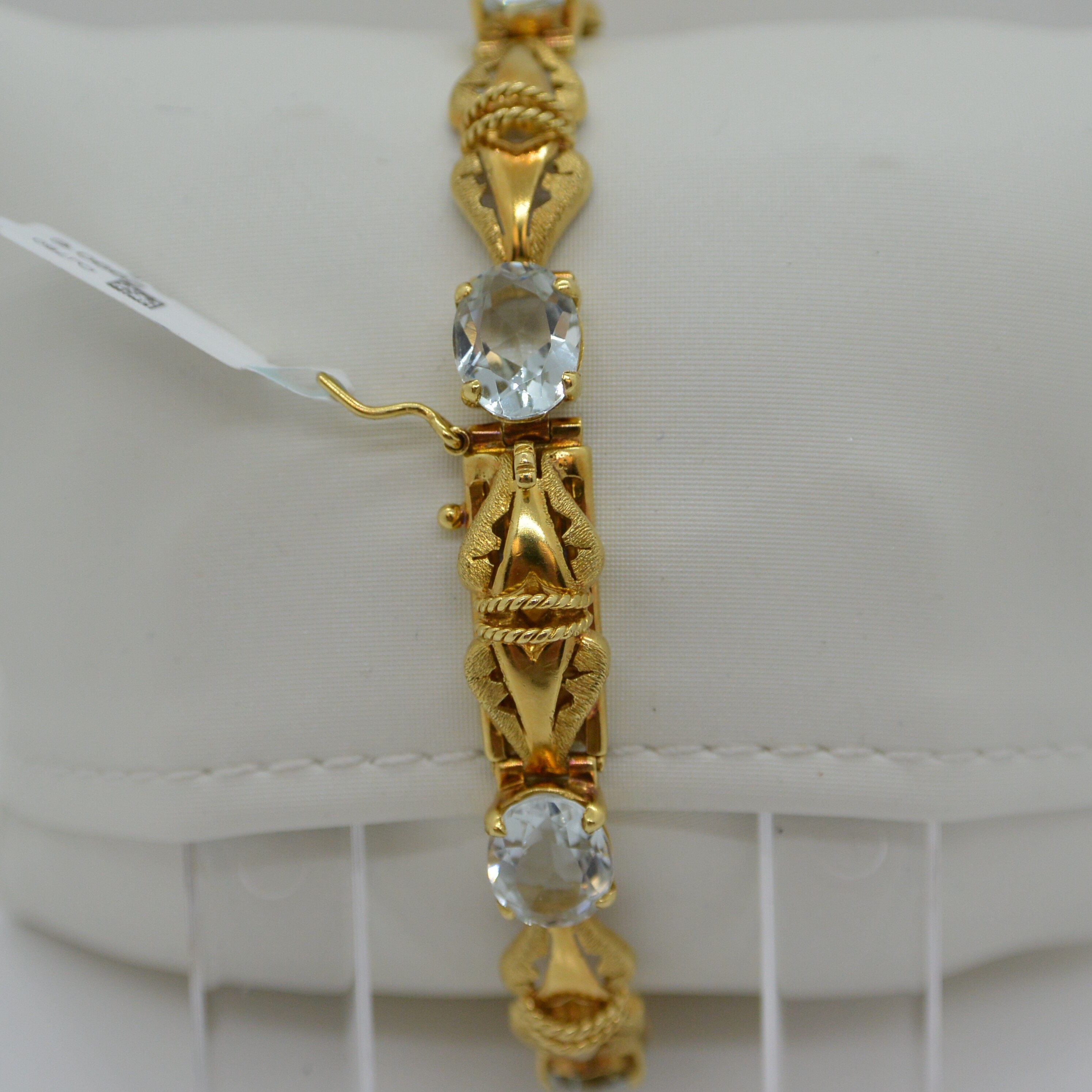 Bracelet maille fantaisie articulée avec aigue marine serti 4 griffes en or jaune 18kt fermir cliquet avec 1 huit de sécurité