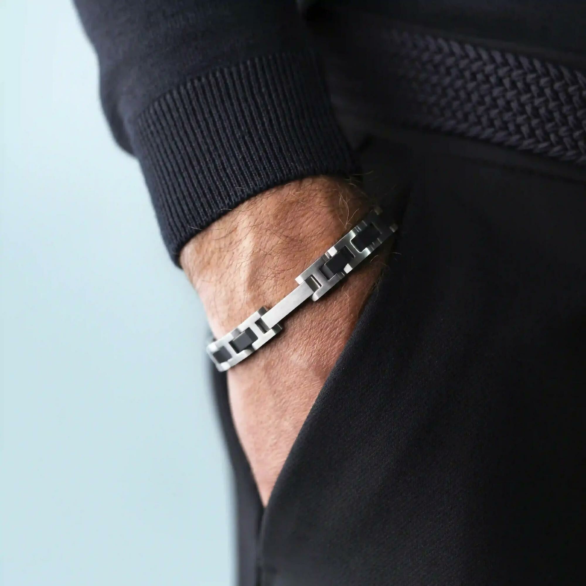 Bracelet Herbelin Cap Camarat en acier brossé et céramique noire sablée