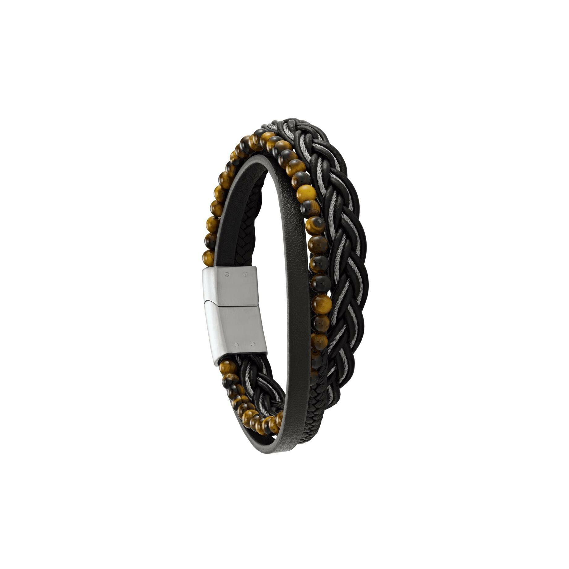 Bracelet Jourdan Bijoux Hercule en cuir, acier et perles naturelles brunes