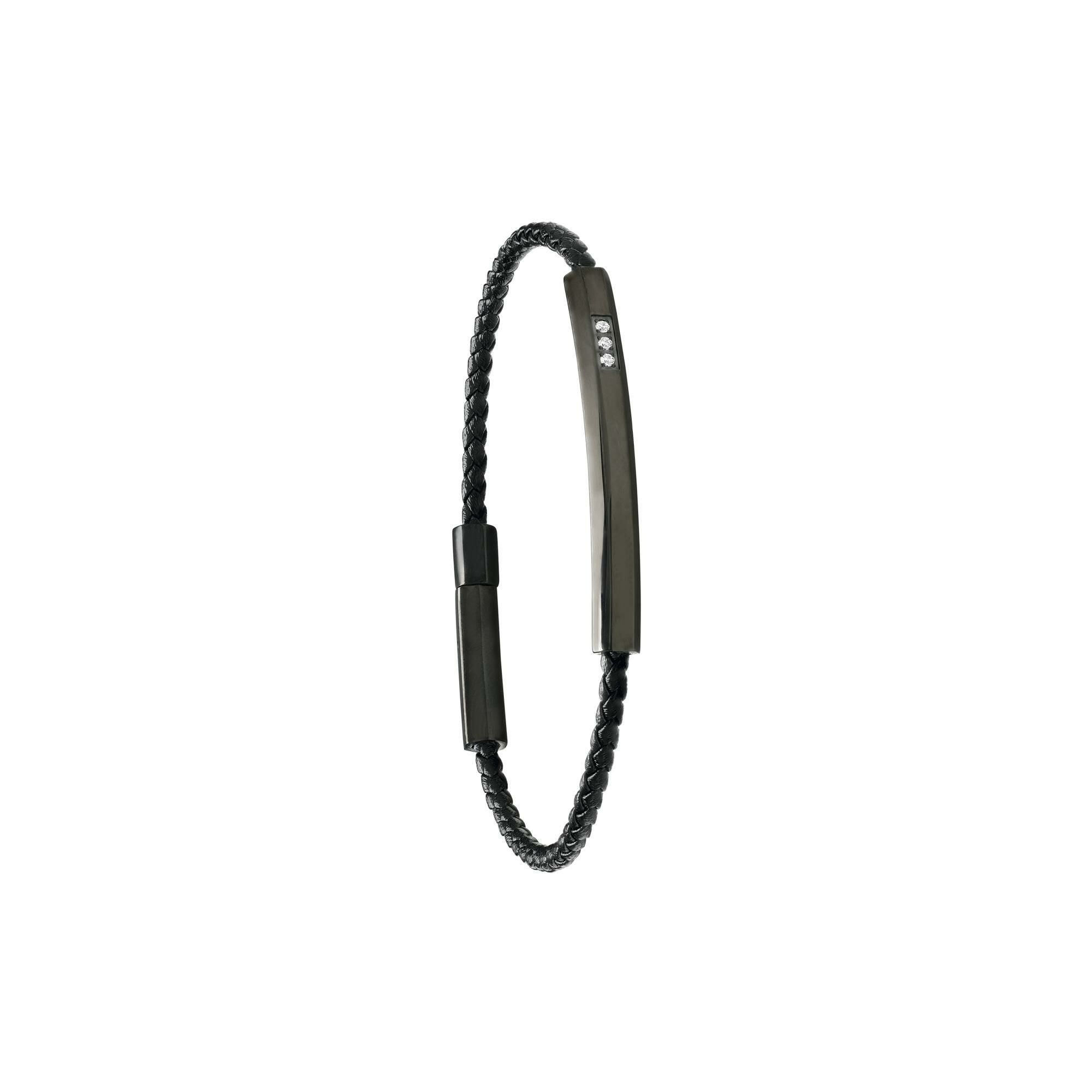 Bracelet Jourdan Bijoux Instinct en cuir, acier pvd et diamants