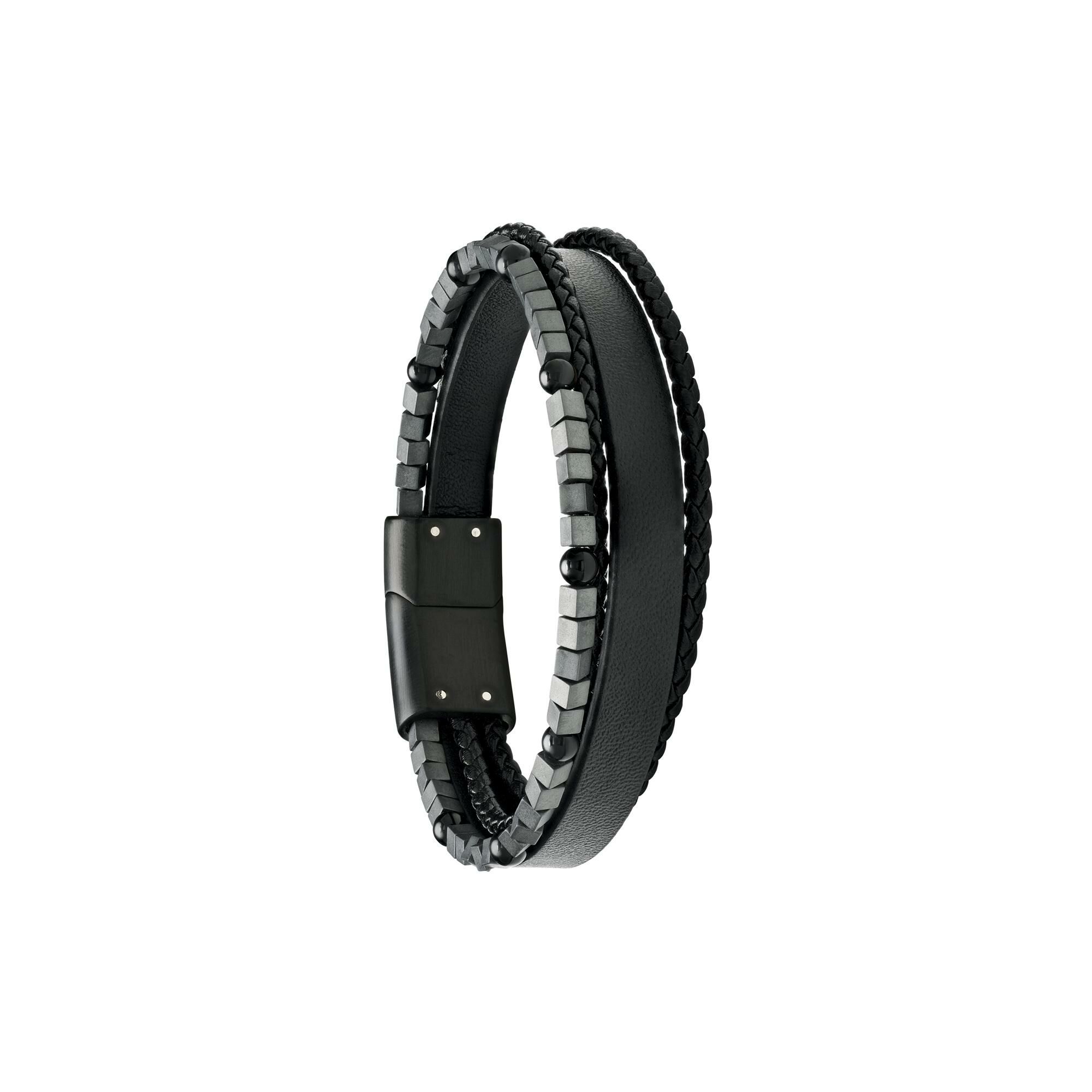Bracelet Jourdan Bijoux Mars en cuir, acier pvd, onyx et hématite