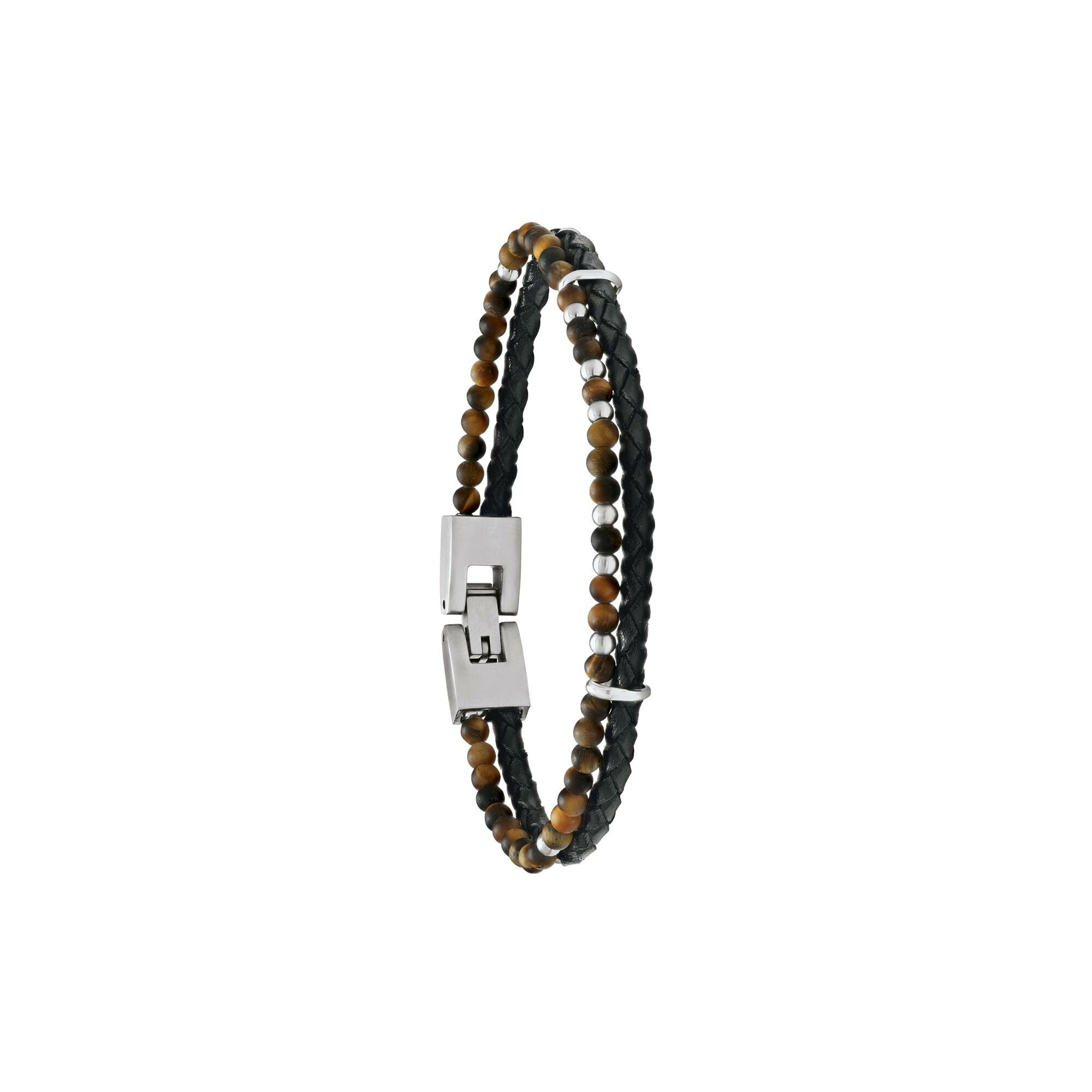 Bracelet Jourdan Bijoux Nil en cuir, acier et œil de tigre