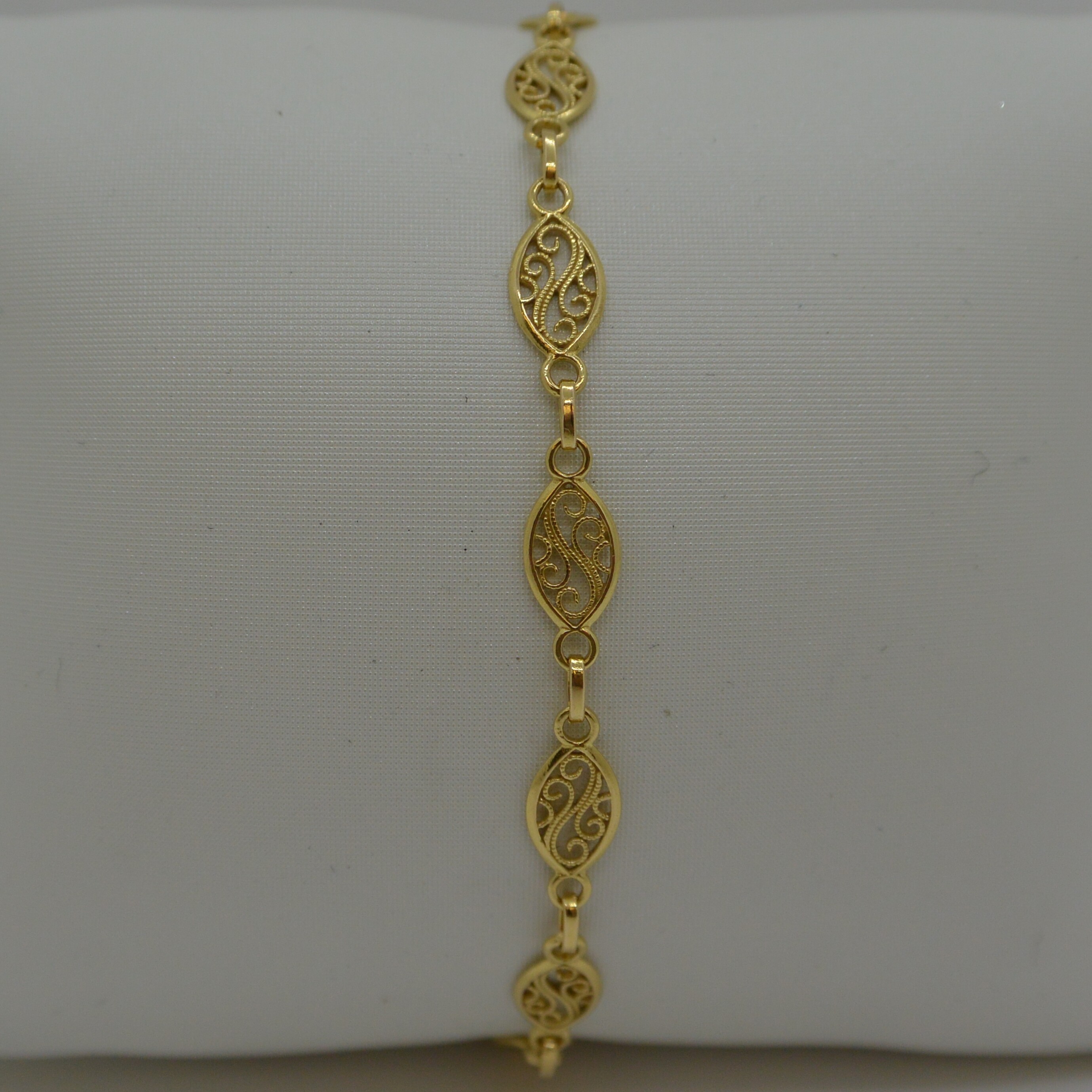 Bracelet maille filigrane en or jaune 18kt fermoir mousqueton