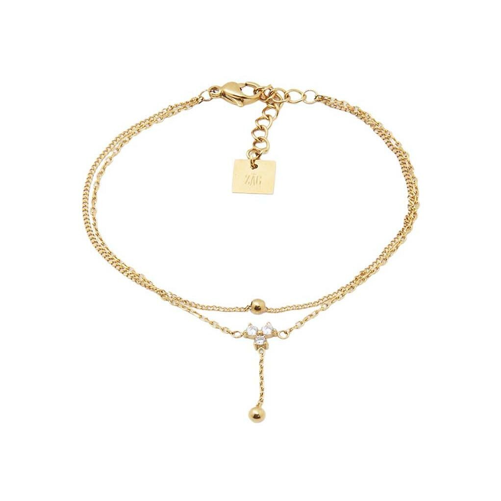 Bracelet Zag Rosillo en acier doré et oxyde de zirconium, Blanc