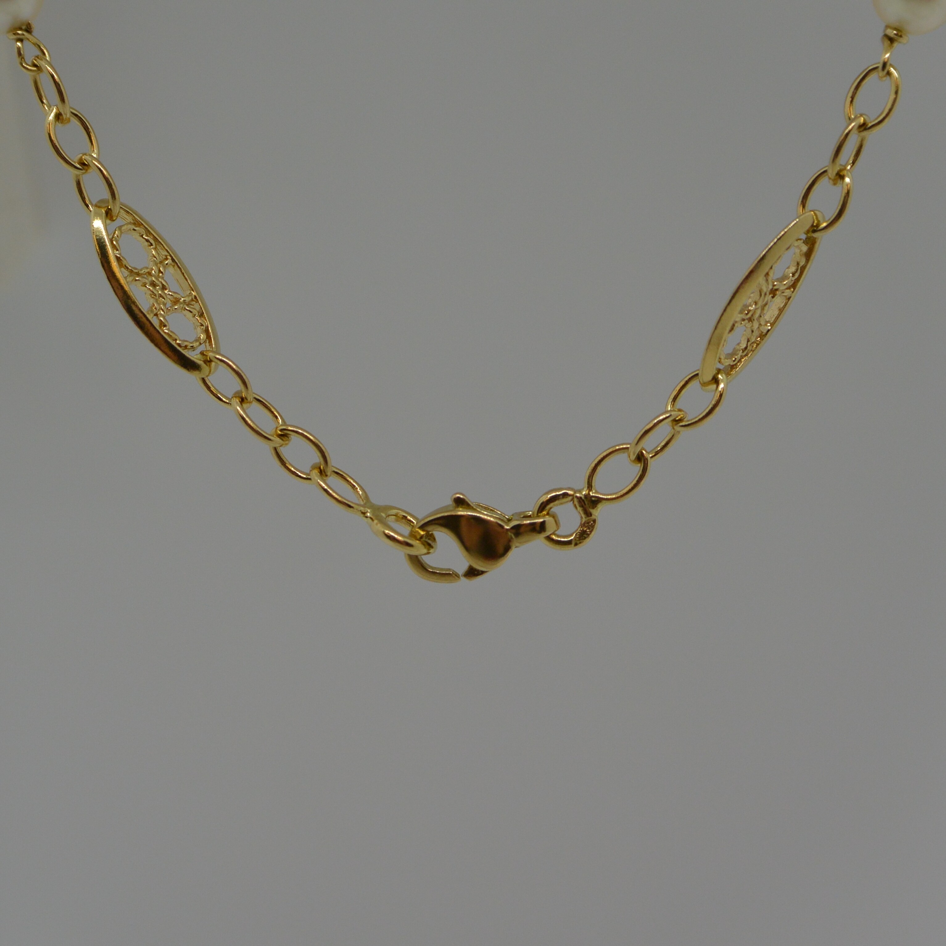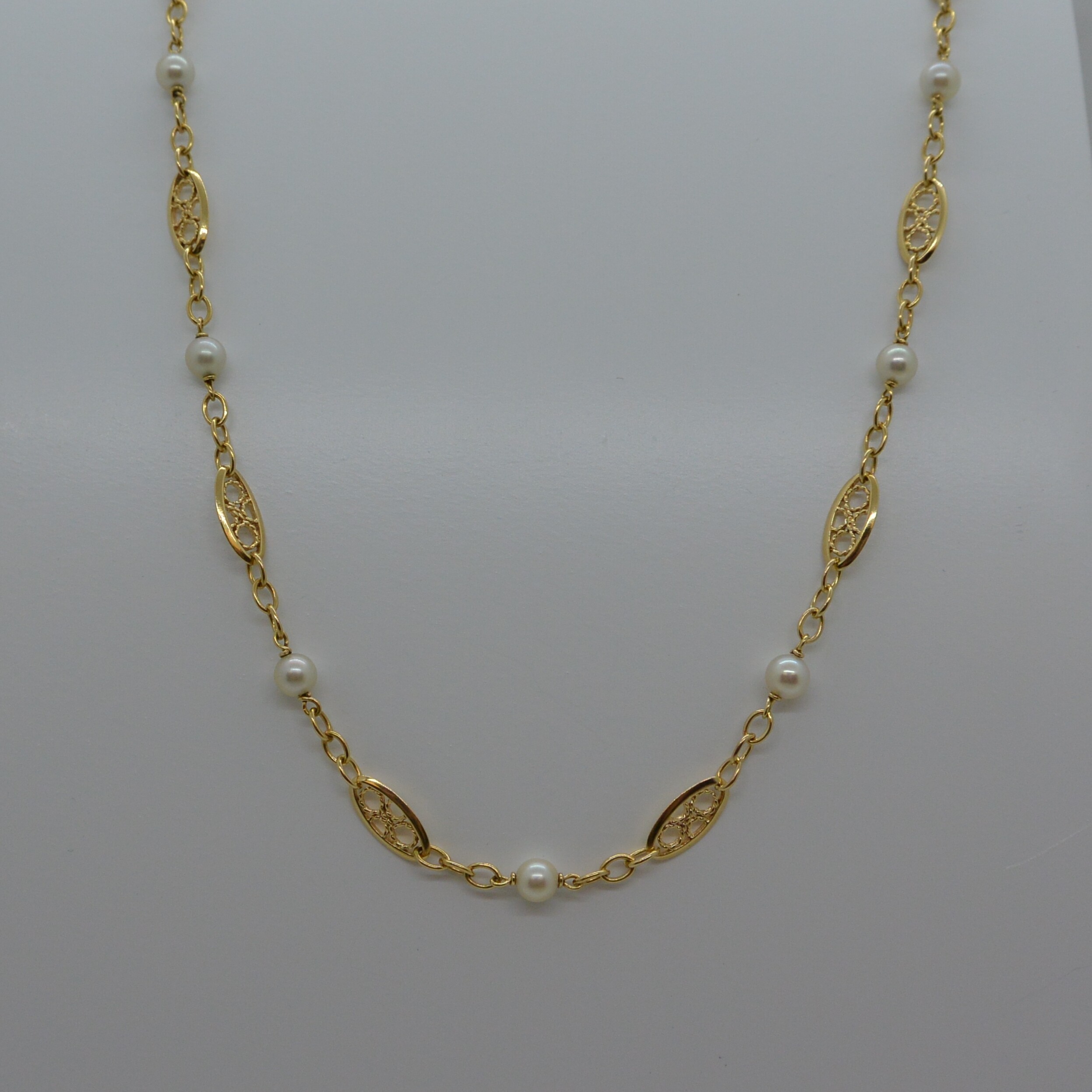 Collier maille filigrane alterneé avec des perles blanches or jaune 18kt fermoir menotte