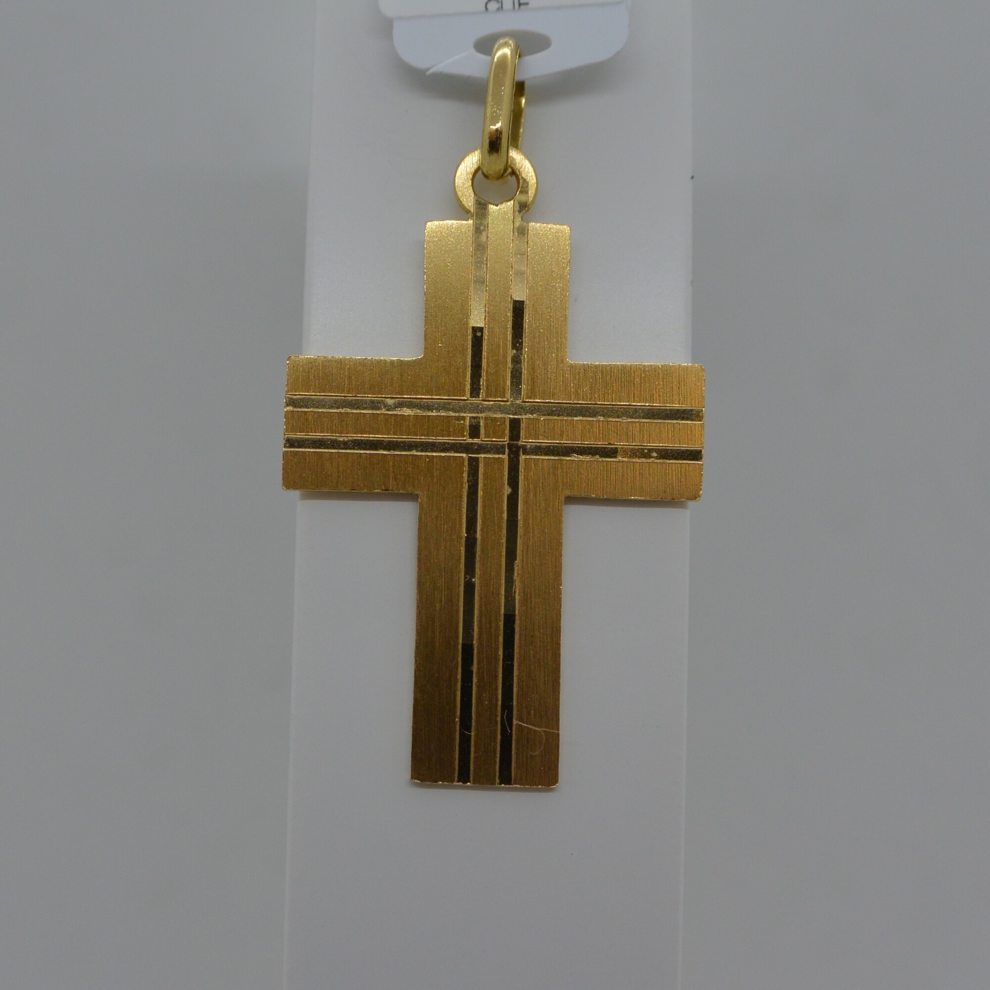 Croix Plate double rainure sur le dessus pleine en or jaune