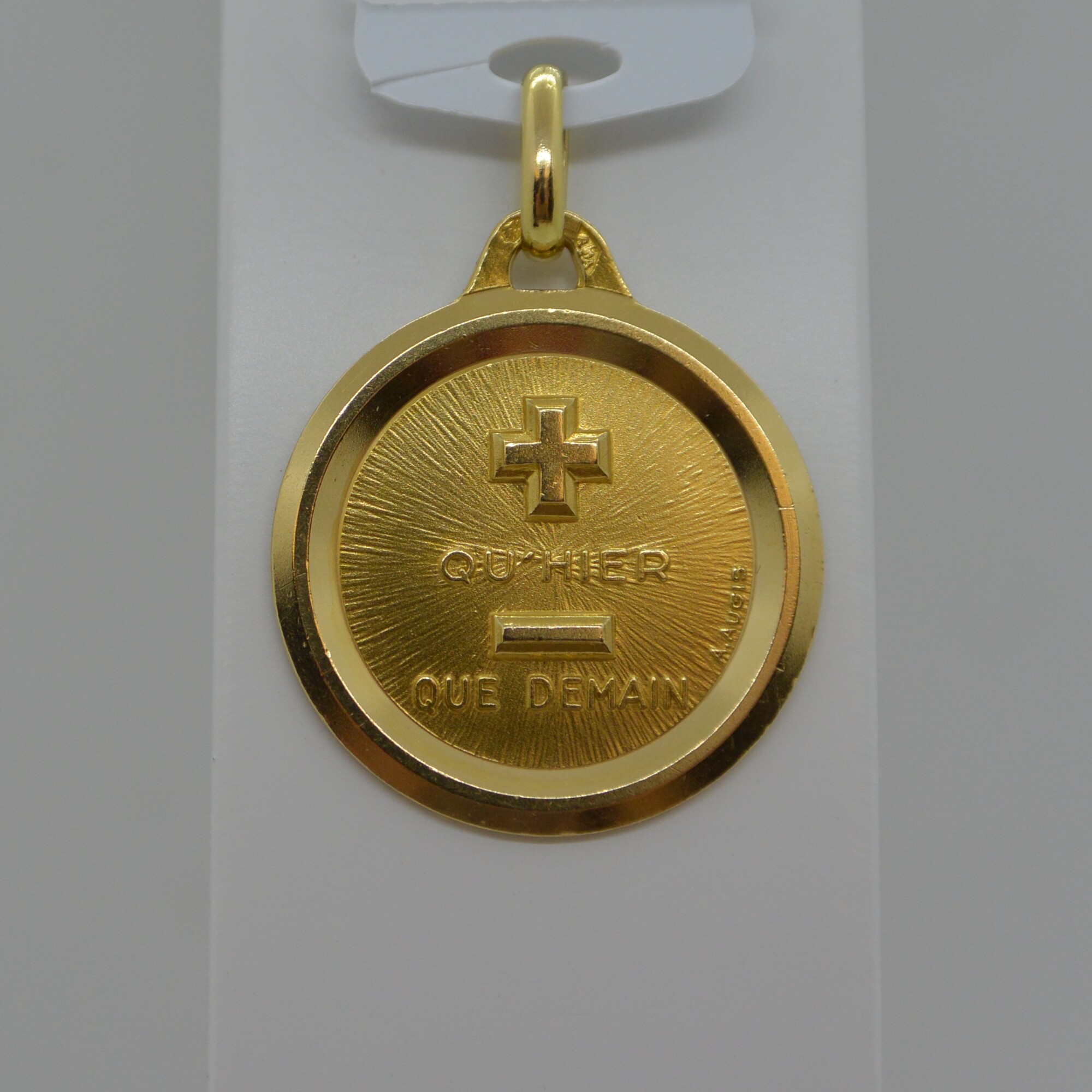 Médaille d'Amour "+ qu'hier - que demain" avec bordure tout en or jaune 750