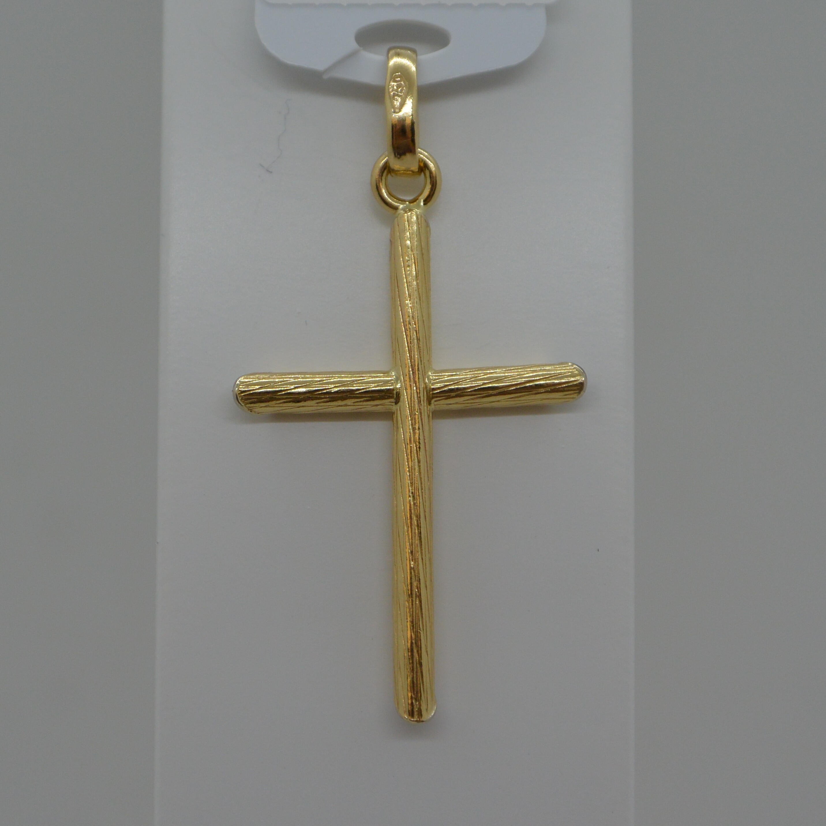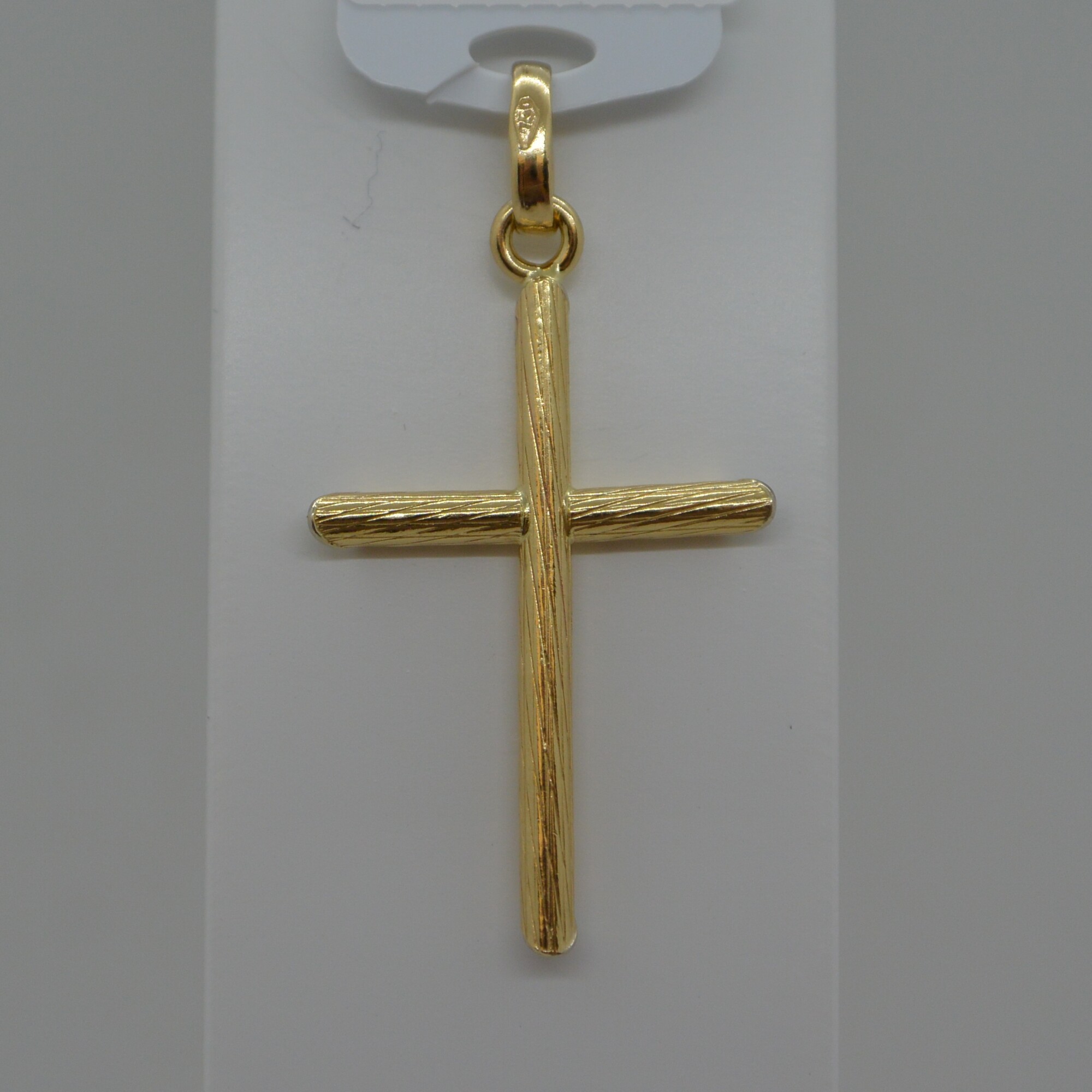 Pendentif Croix effet bois creux en or jaune 18kt