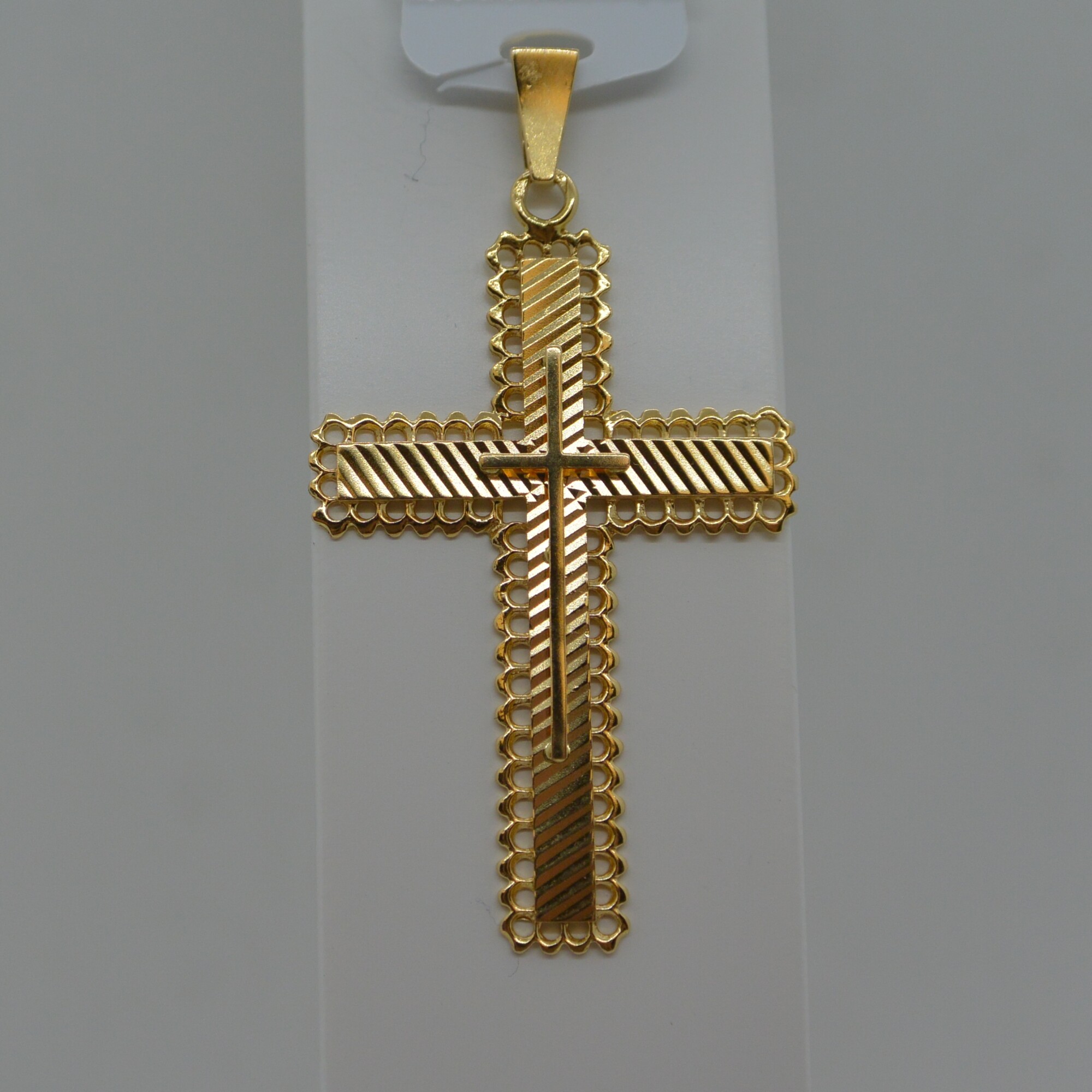 Pendentif Croix entourage Dentelle croix juxtaposé intérieur en or jaune 18kt