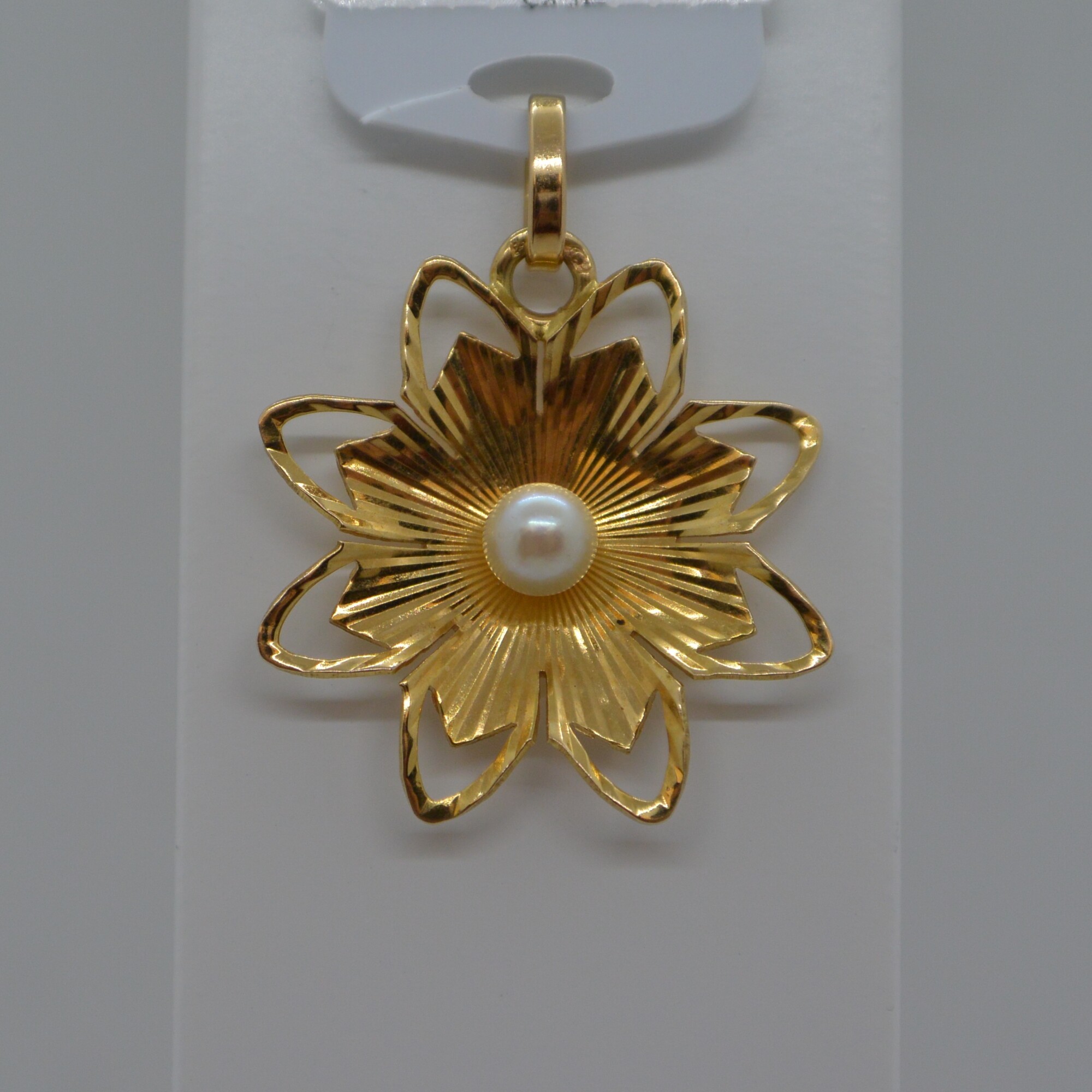 Pendentif forme Fleur perle blanche centrale or jaune 18kt