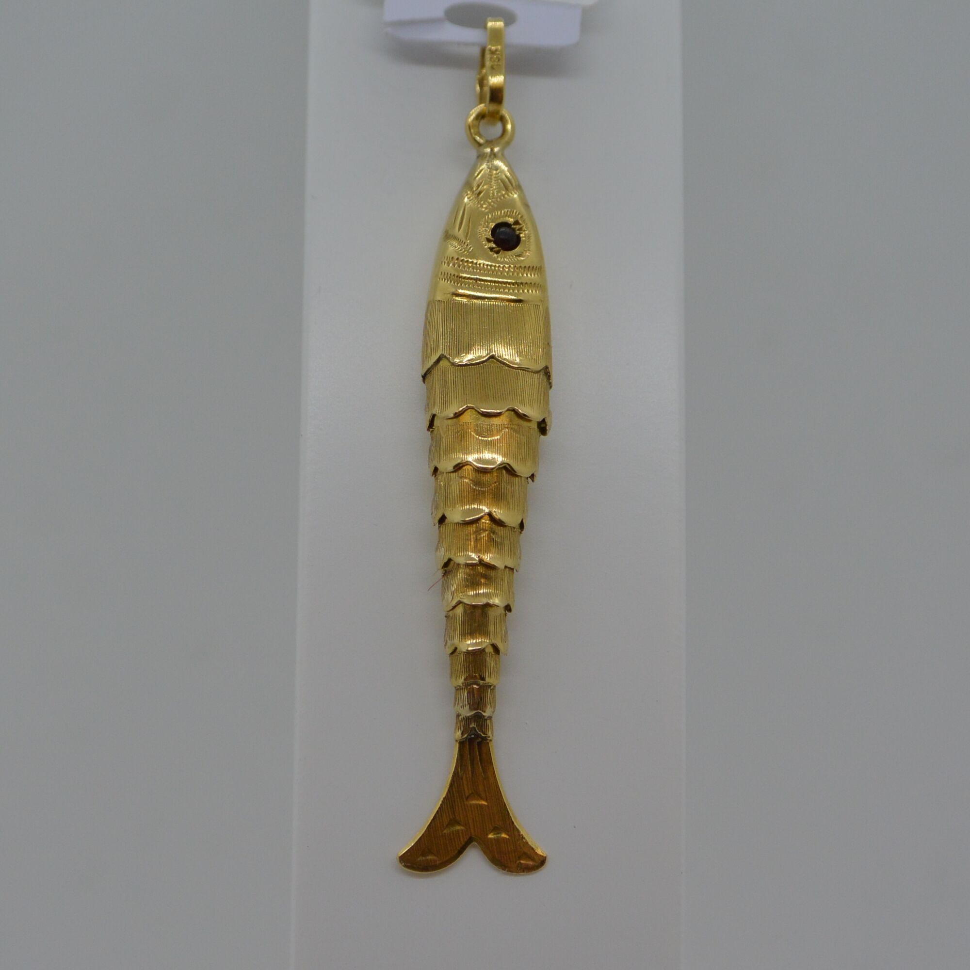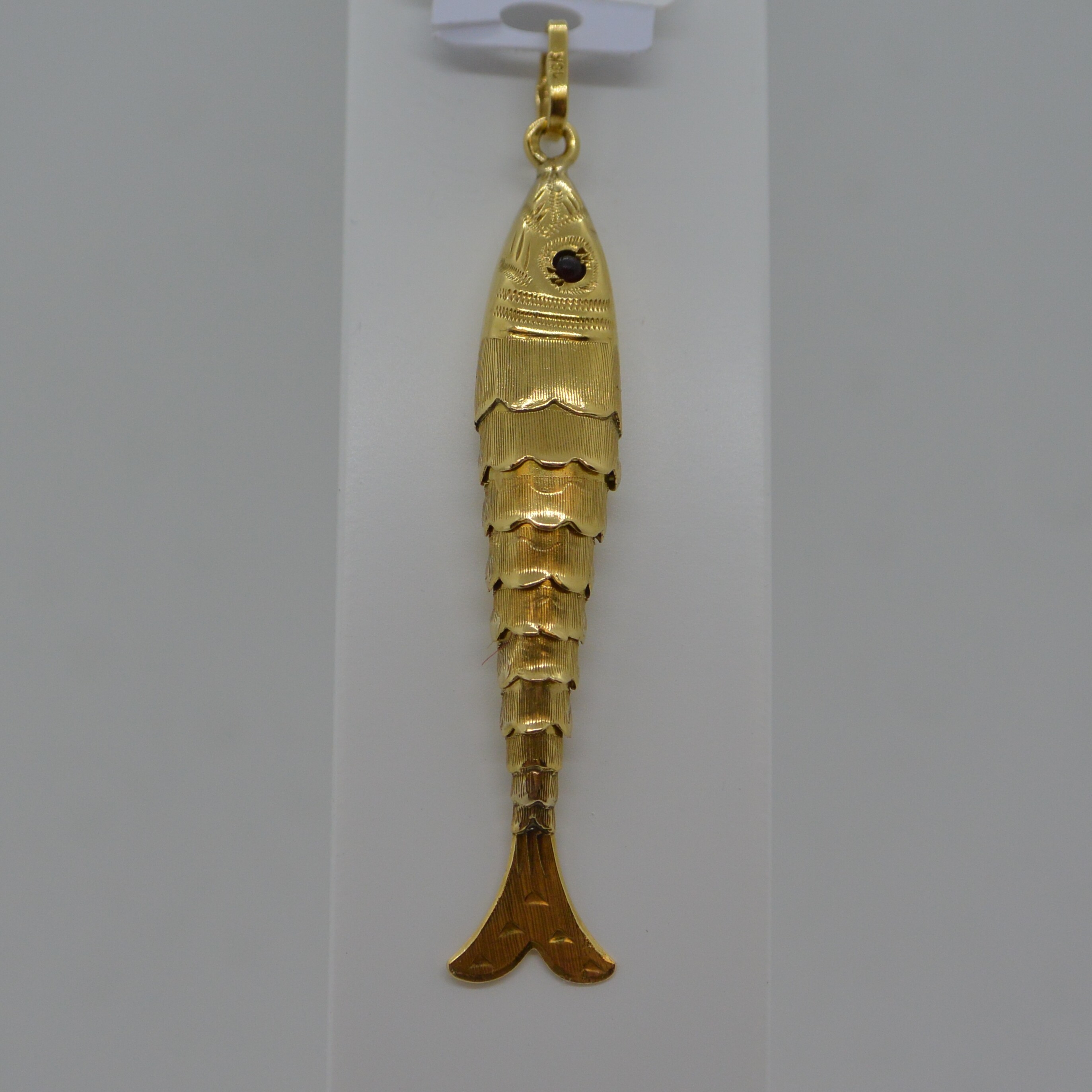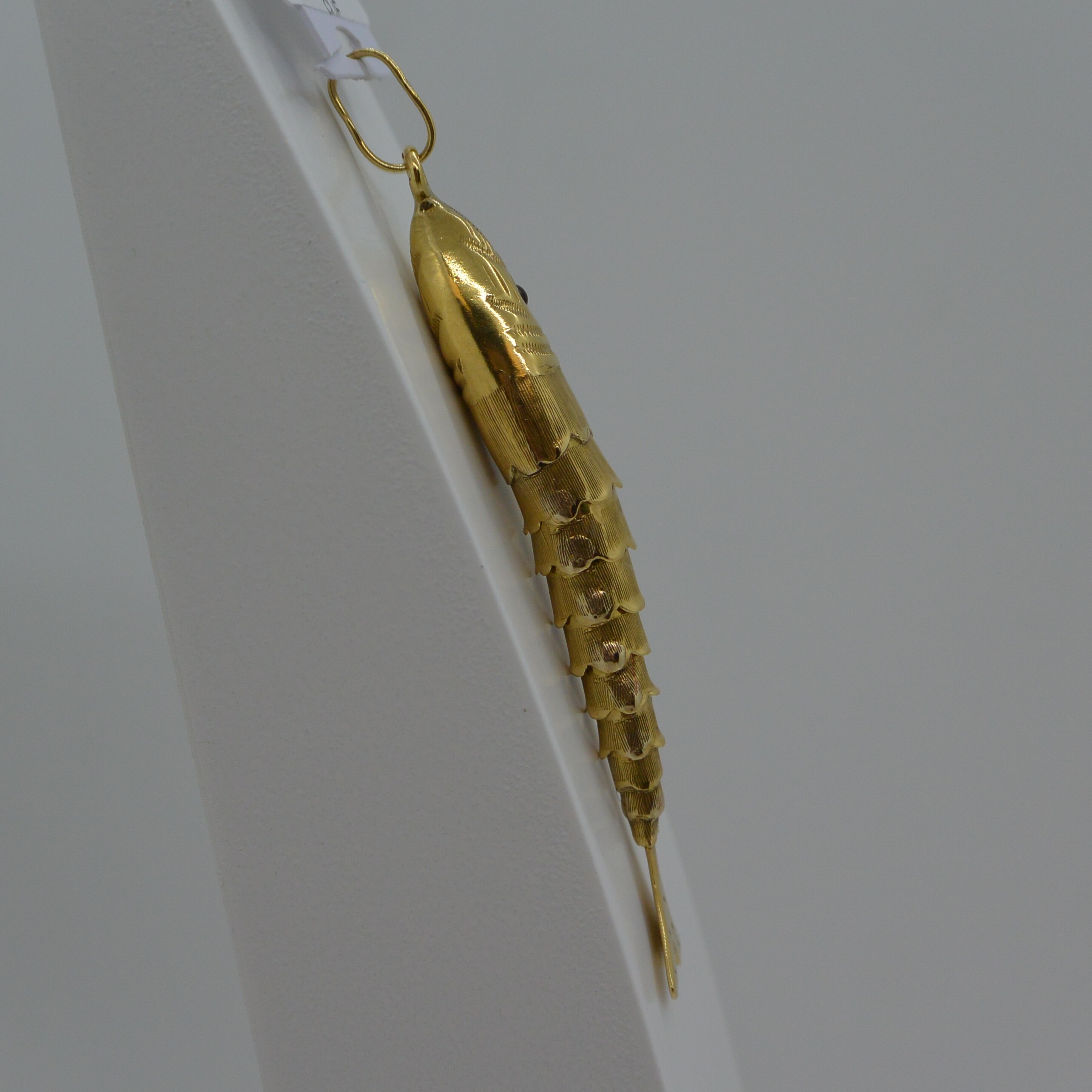 Pendentif Poisson corps articulé 1 rubis dans chaque oeil en or jaune 18kt