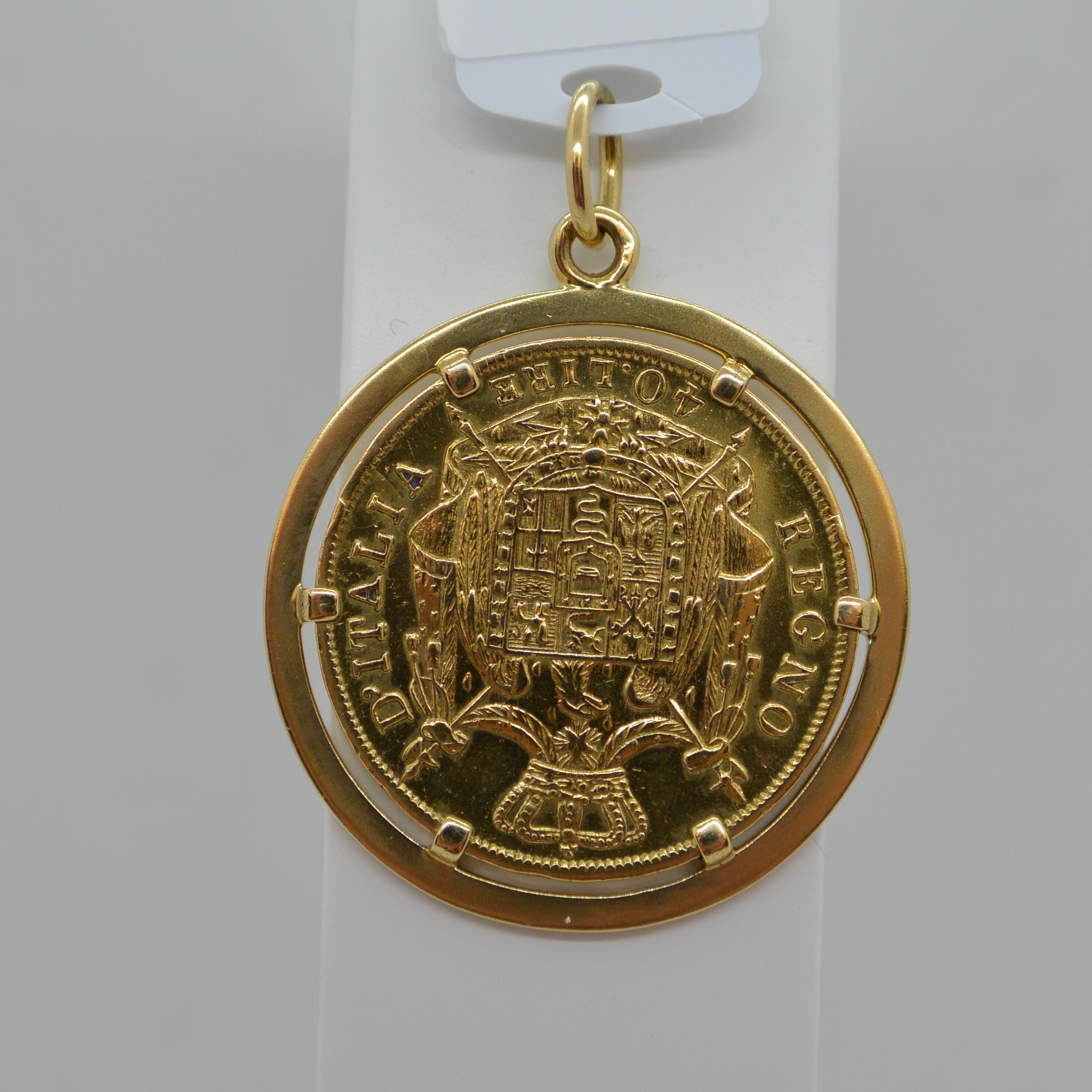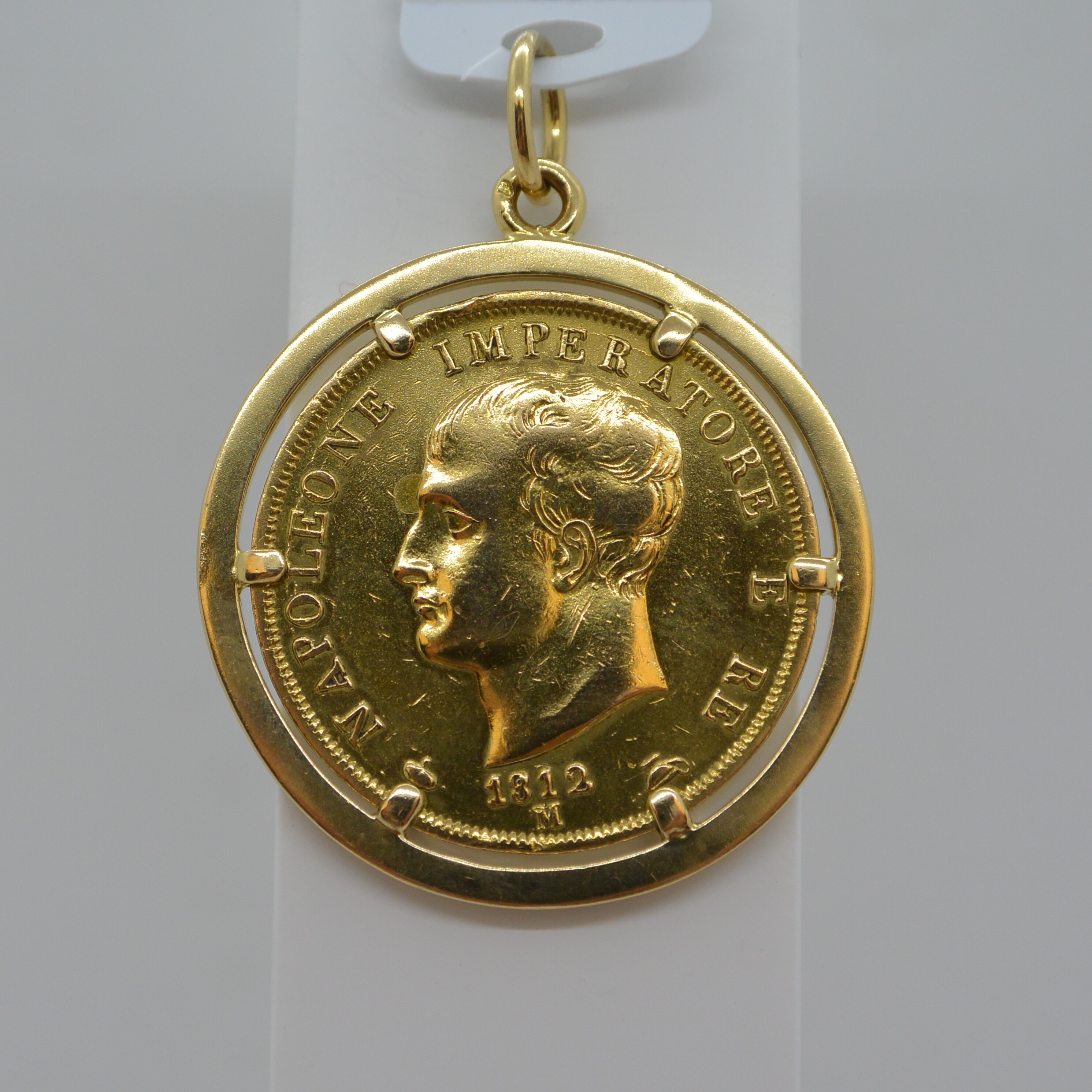Pendentif Porte Pièce 40 Lire Année 1812 entourage serti 6 griffes en or jaune 18kt