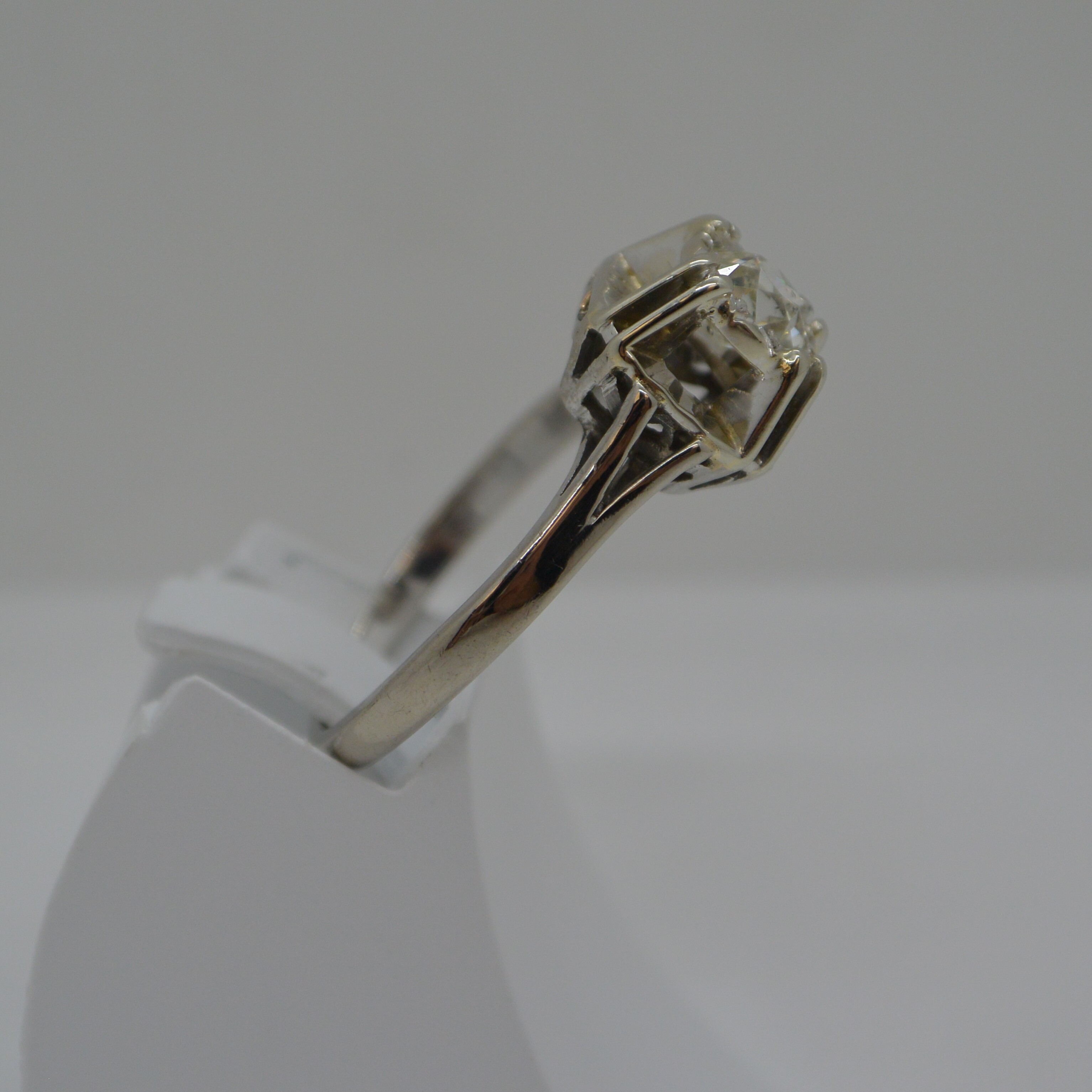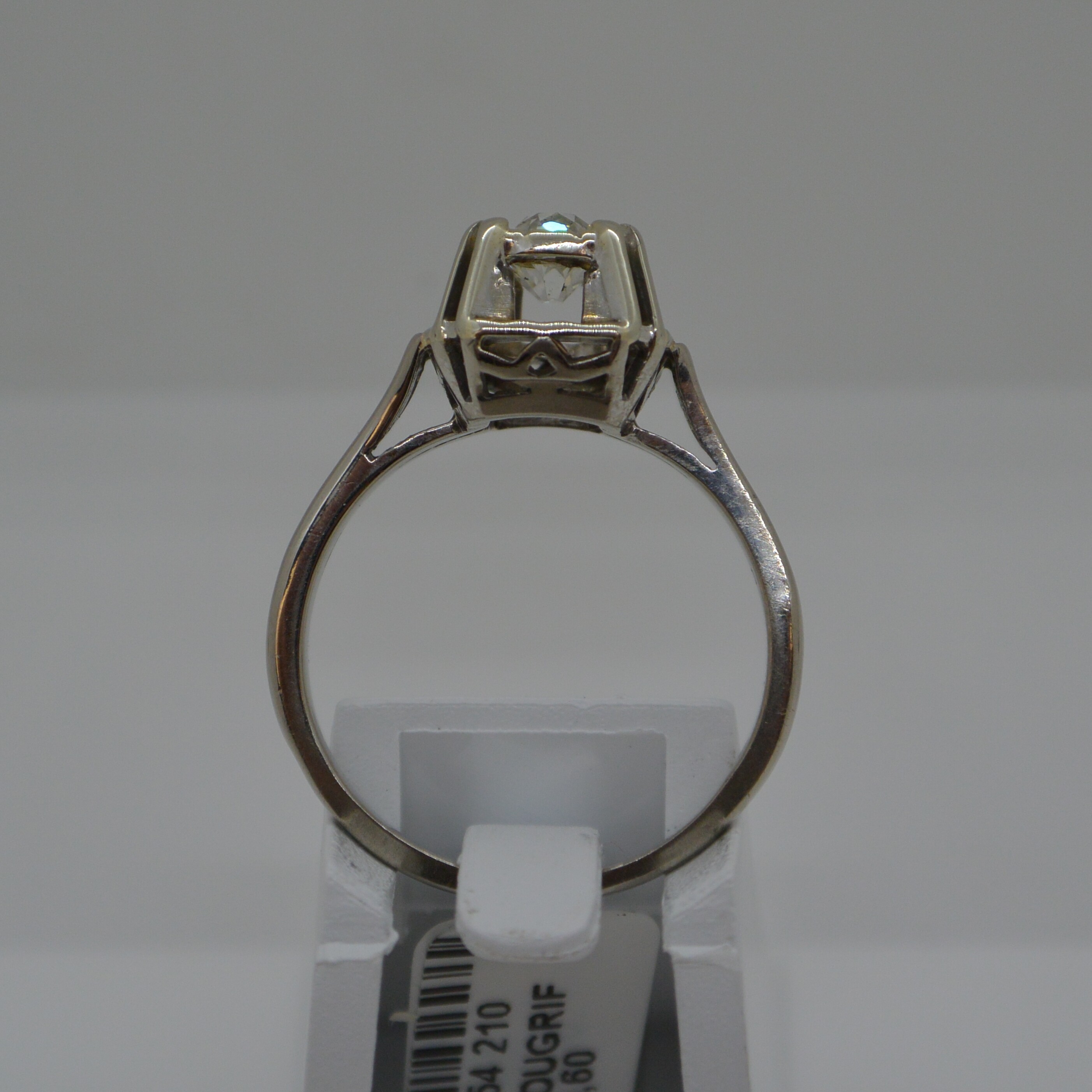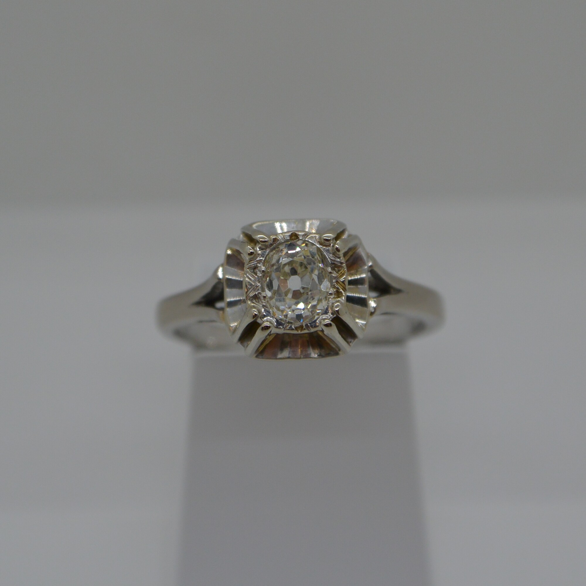 Solitaire diamant taille ancienne ovale serti 4 doubles griffes en or gris